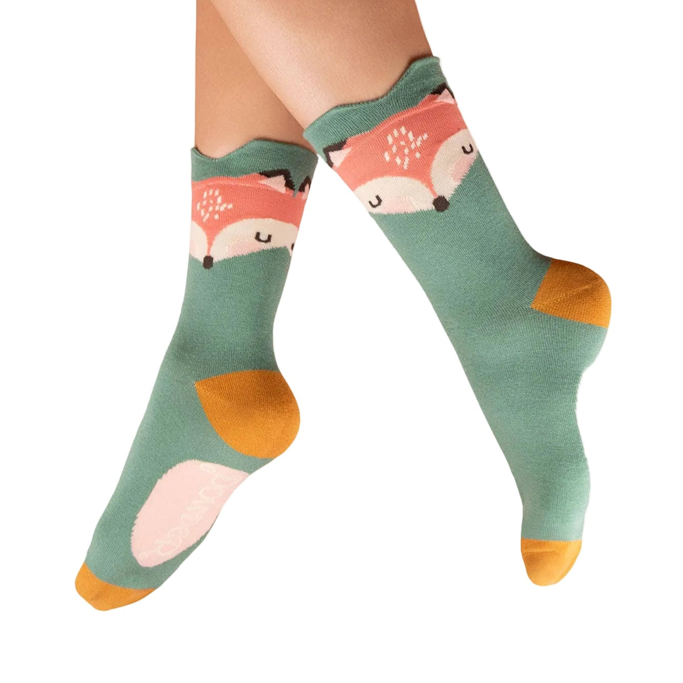 Go all out with these foxy character socks. Wear your love of animals with pride and feel foxy at the same time! Plus - his cute ears can be tugged on to pull these socks up your ankles!