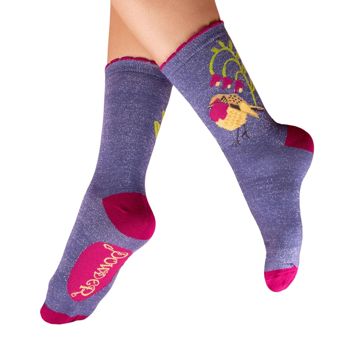 Time for your ankles to sparkle and shine bright this season! Always a symbol of positivity in winter, this cute robin adds a festive charm to these lovely glitter socks. Soft and stretchy bamboo keep these forever luxurious!