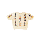 We love this medium-weight soft ivory sweater with bright floral embroider. With rib bands at the neckline, bottom and sleeves - it will keep you warm AND stylish as winter slowly turns into spring!
