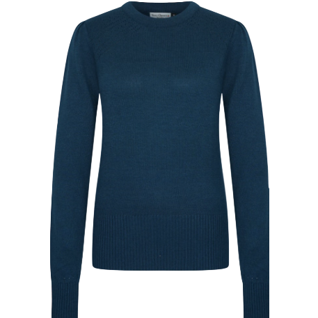 The sweater has a round neck, subtle openwork pattern on the shoulder panels and the Petrol color will complement the rest of your wardrobe!