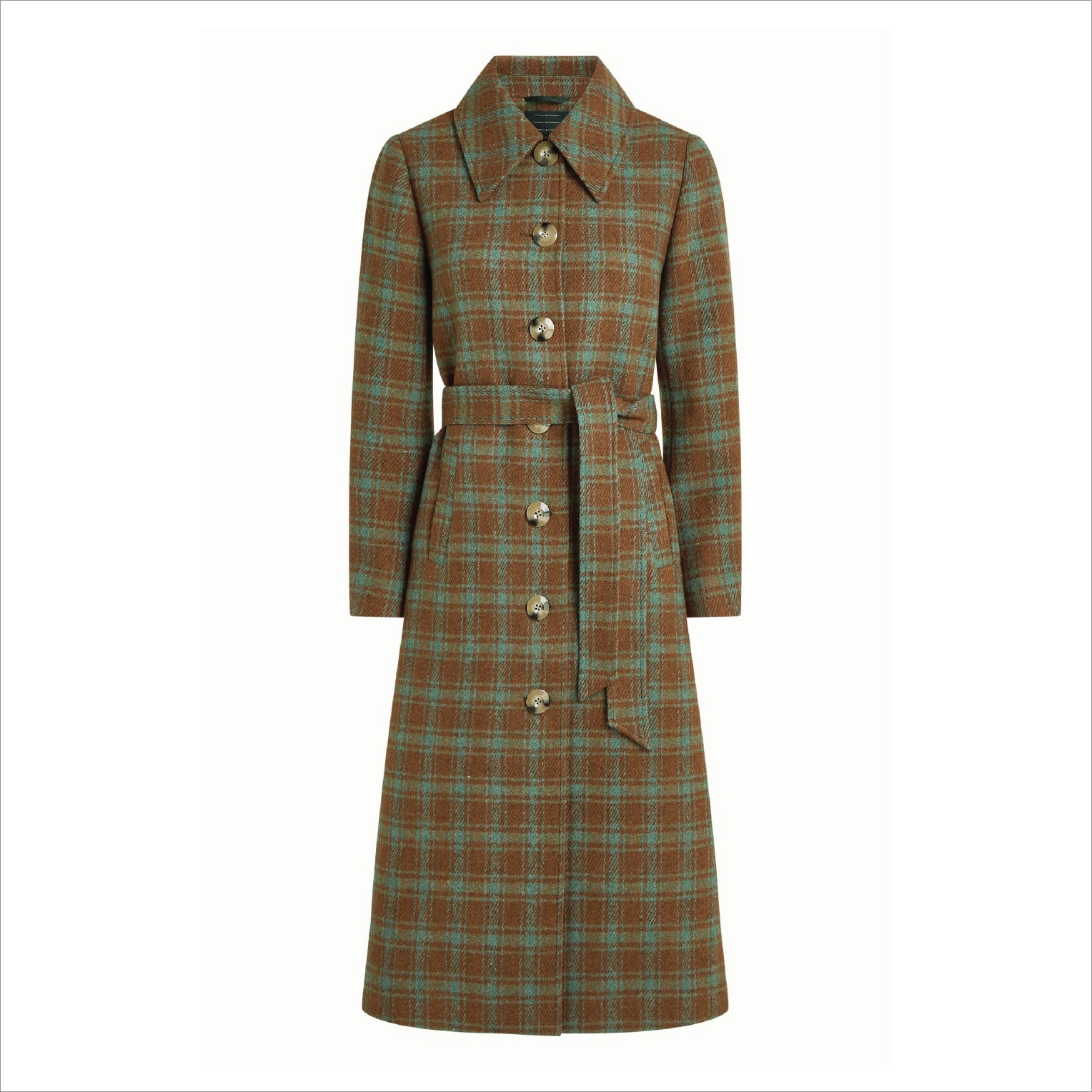This checkered coat features a lined interior and welt pockets for added convenience. Made from non-stretch woven polyester, it includes long sleeves, a big collar, and a tie belt, fastening securely with buttons for comfortable and confident wear.
