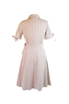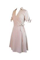 The Cora Kingston Dress brings a playful twist to your wardrobe with its fun wrap design and charming bows at the sleeves. Set against a crisp white background, the vibrant geometric print in green, red, pink, and blue adds a lively splash of color perfect for any occasion. Comfortable and stylish, this dress is sure to brighten your day and turn heads wherever you go.