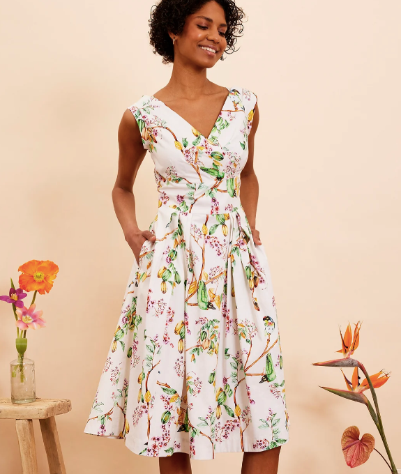 Our Florence Dress is a timeless silhouette that’s destined to be a summer staple. Featuring a nipped-in waist with a demure, cross-front neckline and a semi-full skirt. Discreet shoulder inserts create an off-the-shoulder effect while providing coverage for underwear straps. Fully lined with a centre-back zip, it’s detailed with our signature concealed side seam pockets.