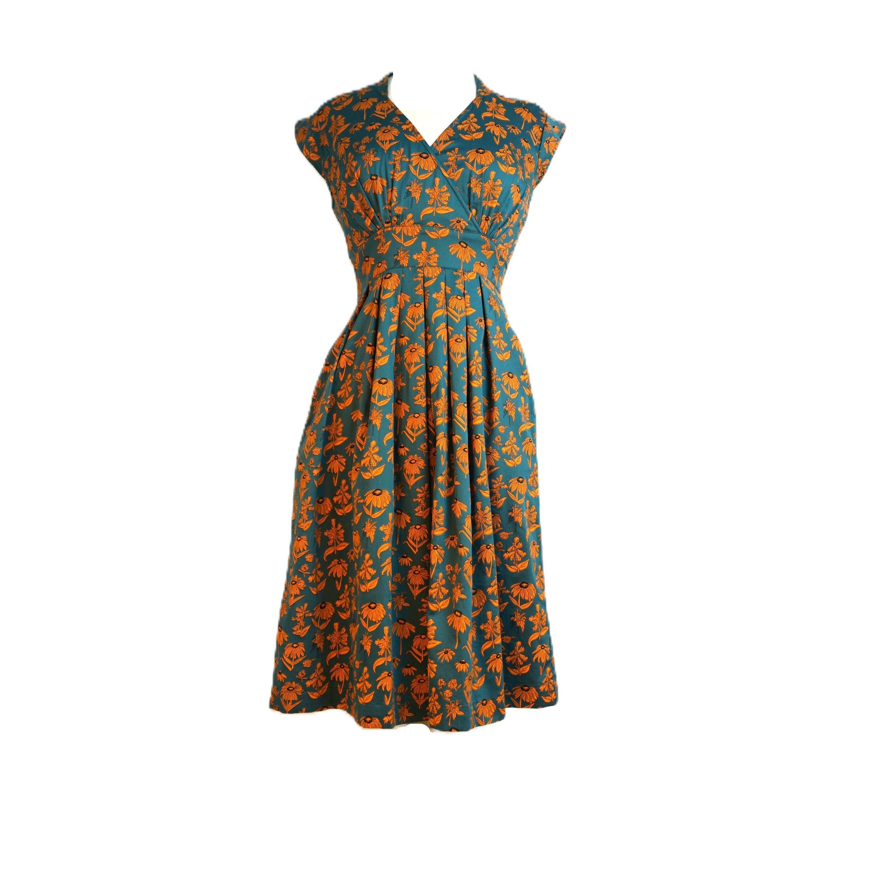 We love the Lucille Dress from Mata Traders, one of our favorite sustainable brands. This bold teal and bronze dress is the perfect vibe for early Fall: short sleeved, a relaxed but flattering fit, and breathable cotton!