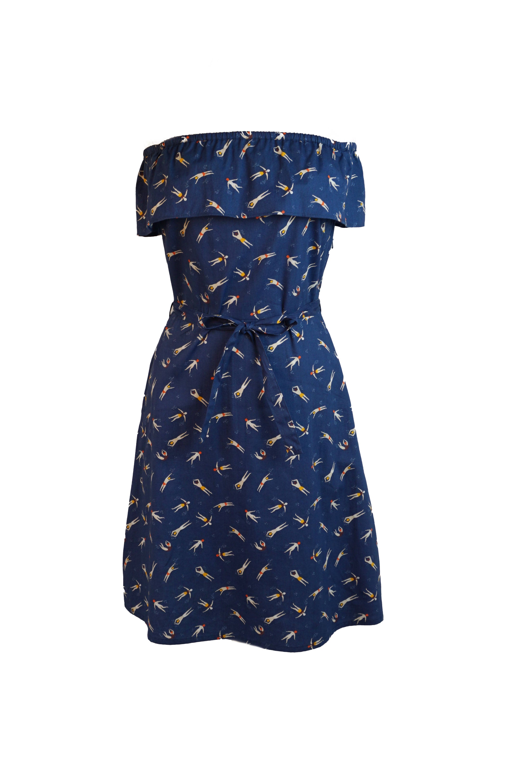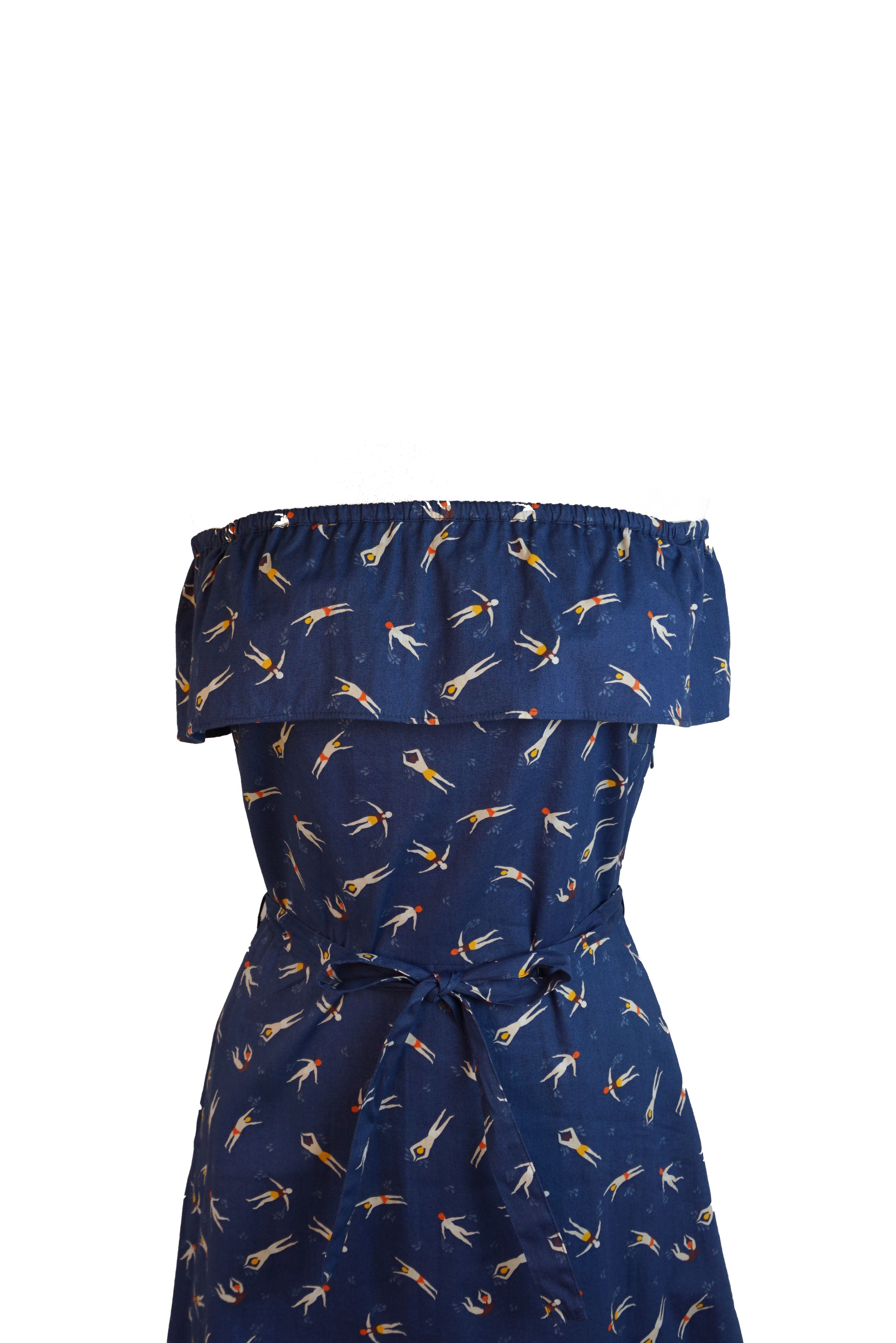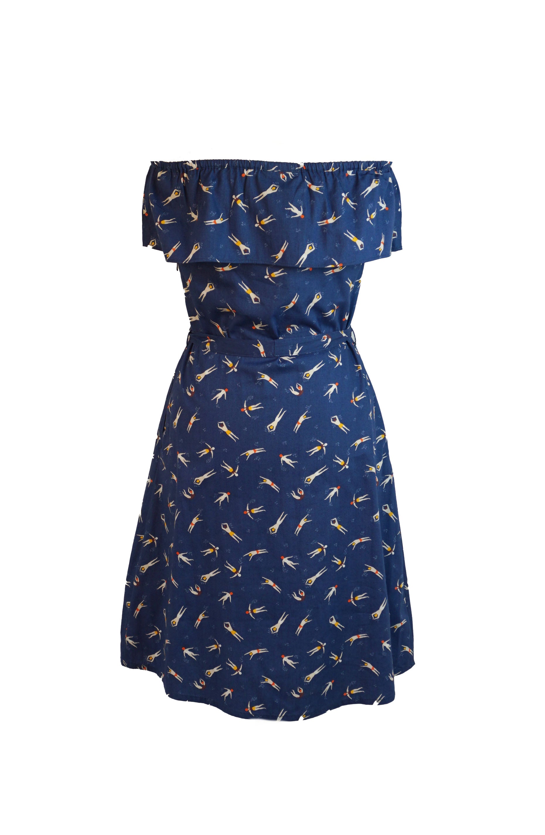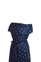This vintage collared tie front dress in a playful navy pattern is the epitome of summer! Dress it up with heels and an elegant top, or pair with a tank and sandals. Either way, you will be bringing cheer to the world with this Irish designed print!