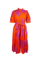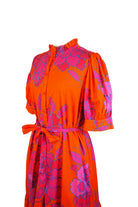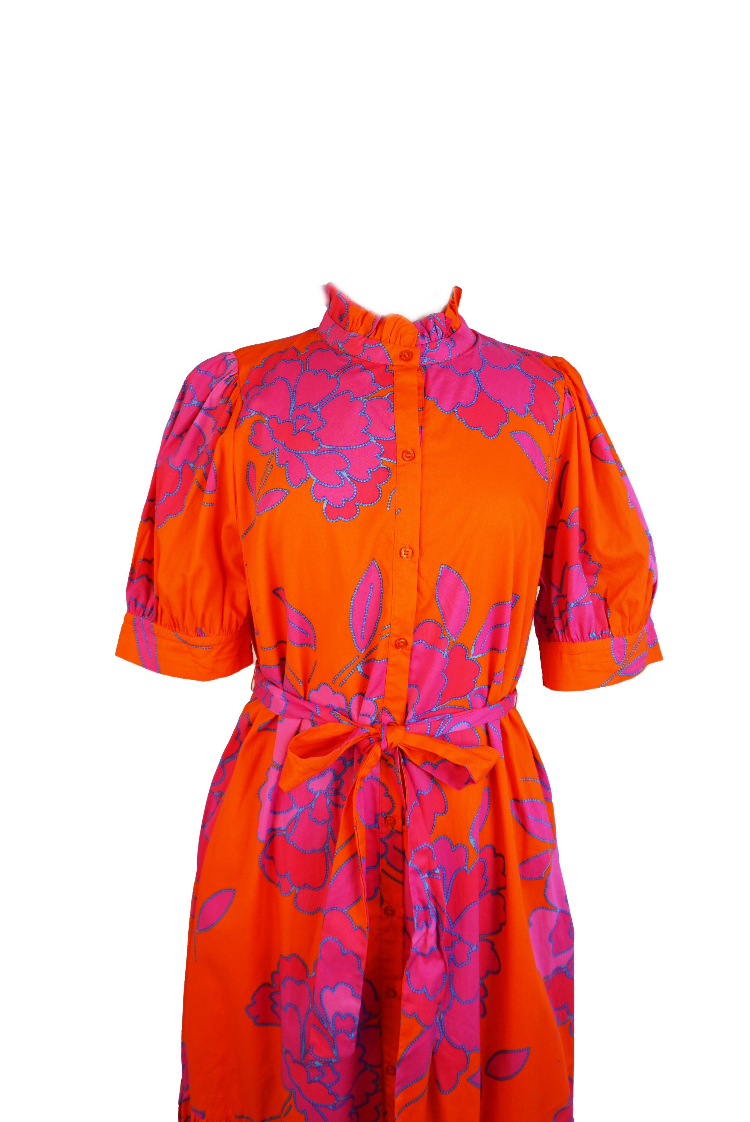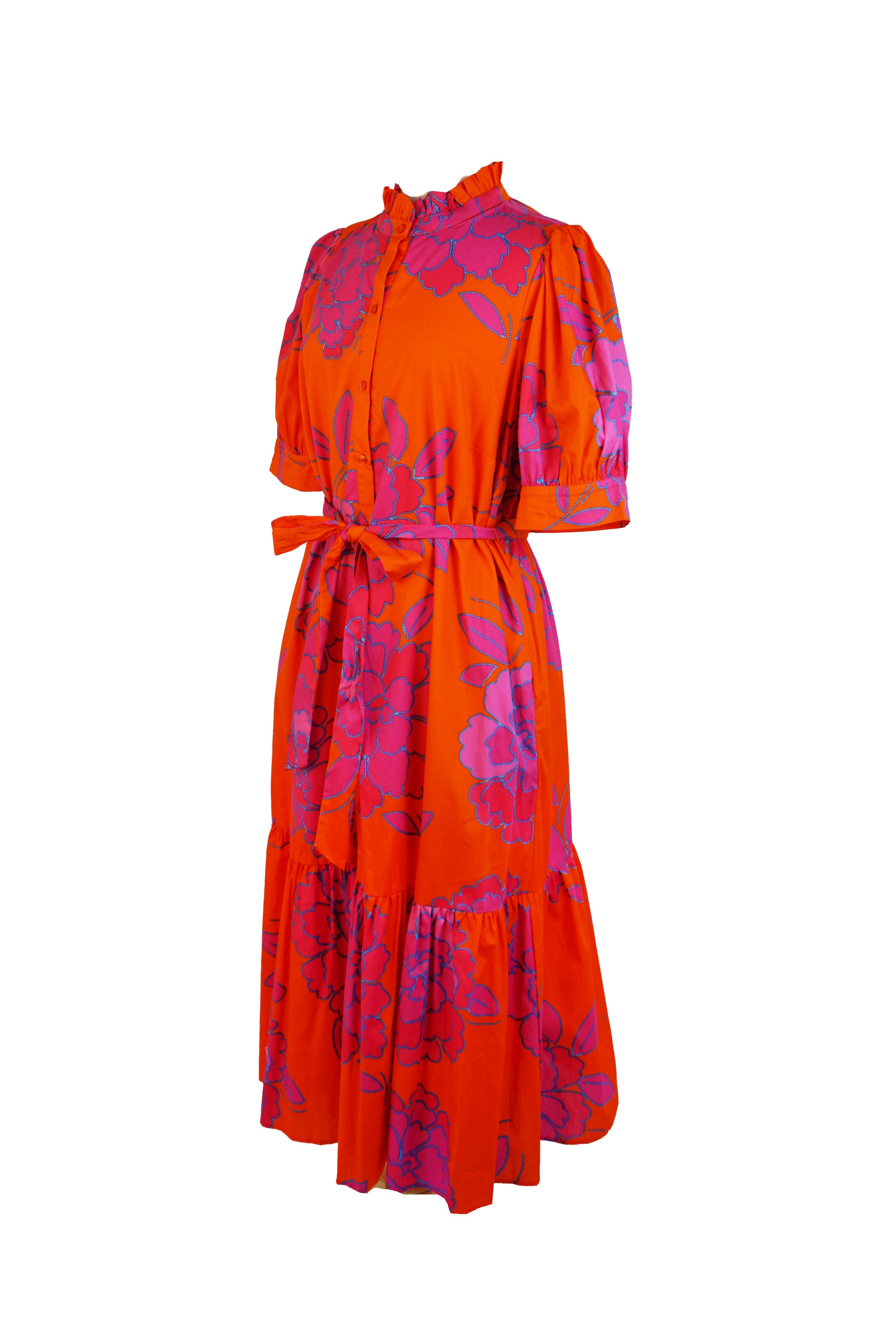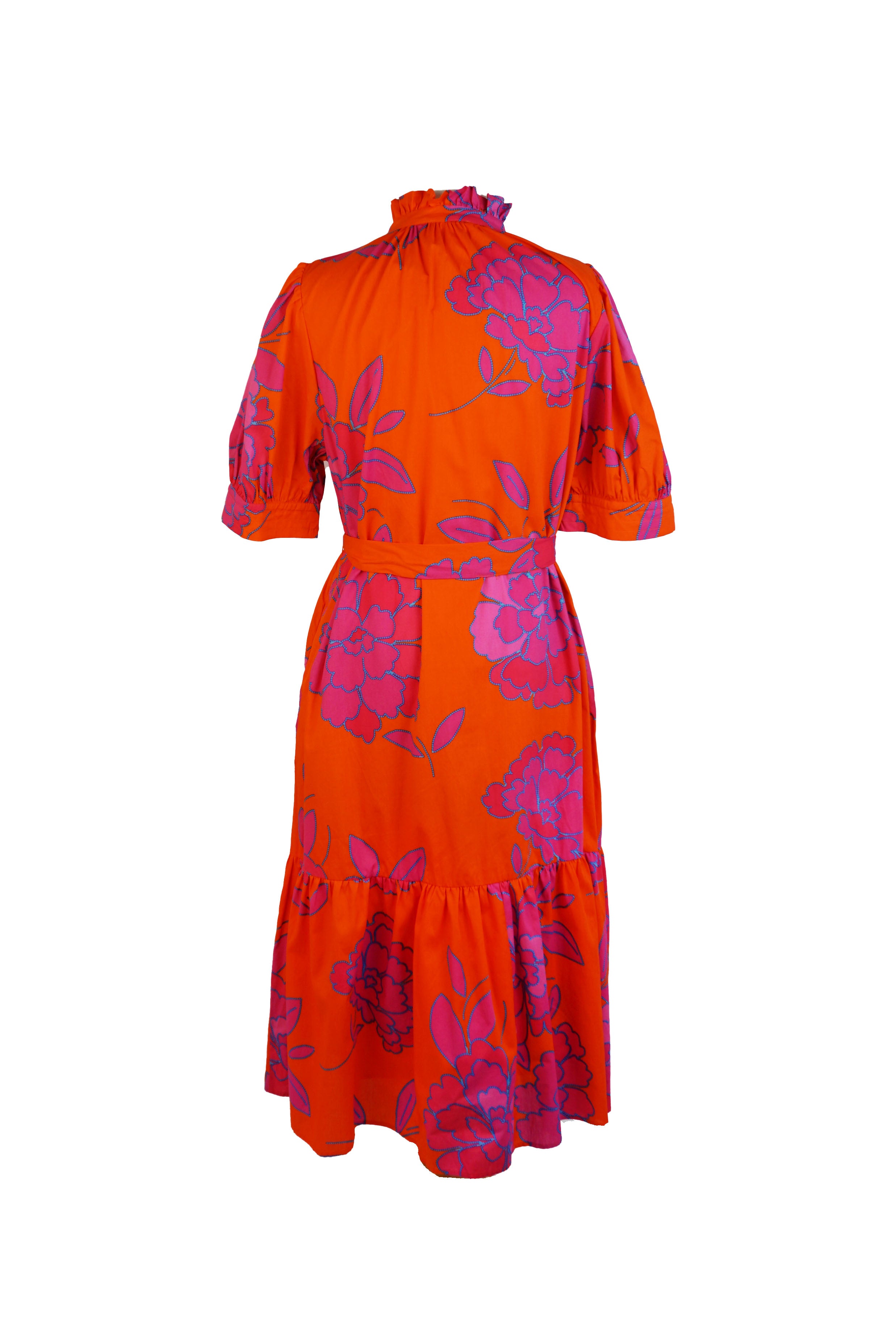 There's no way this dress won't give you a new outlook with its cheerful red, berry and periwinkle floral design! A ruffled mock neck follows short bubble sleeves, with a button up midi bodice. A belt around the waist can be tied and adjusted to your liking. Pair with heels or boots that match along to create a full look.