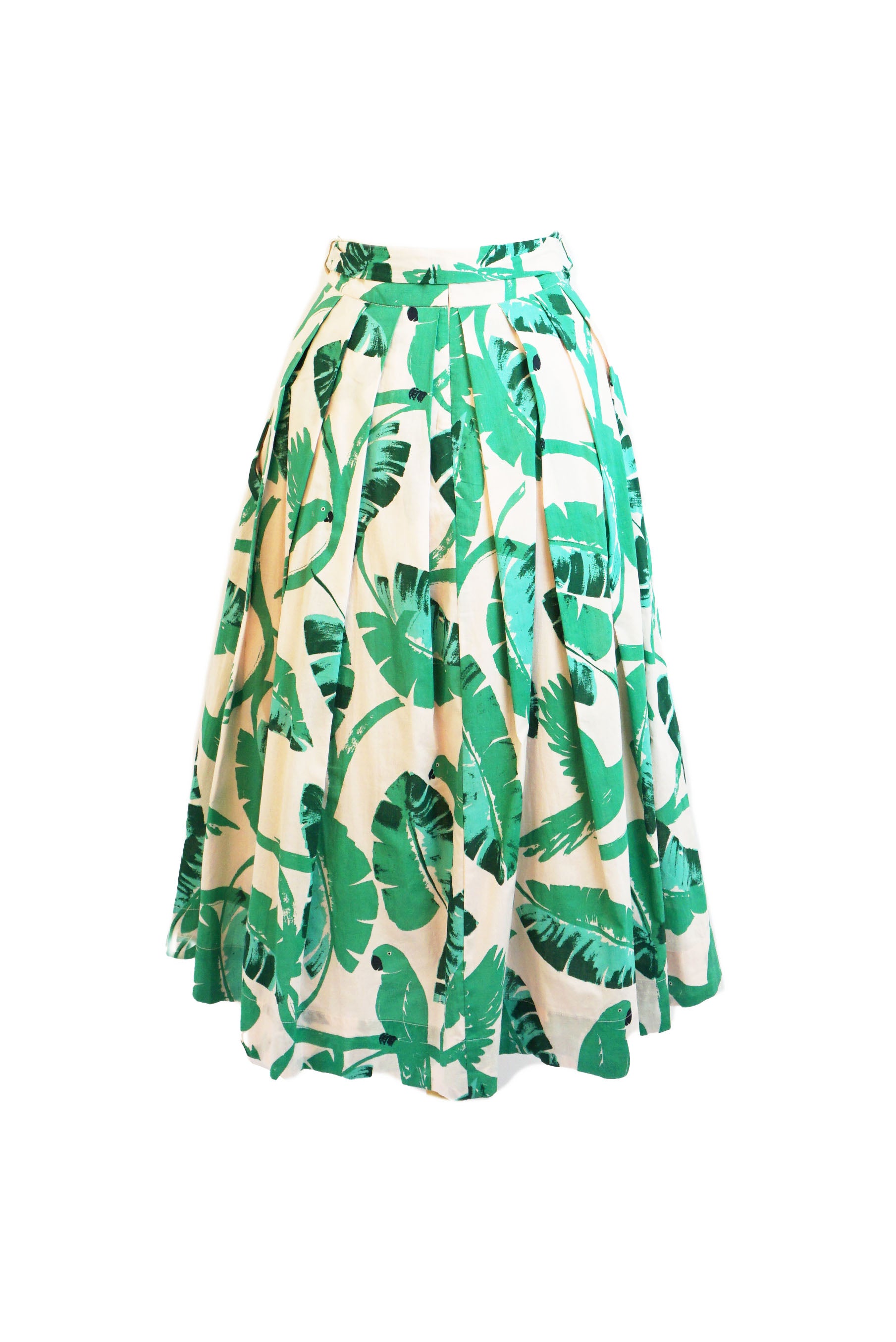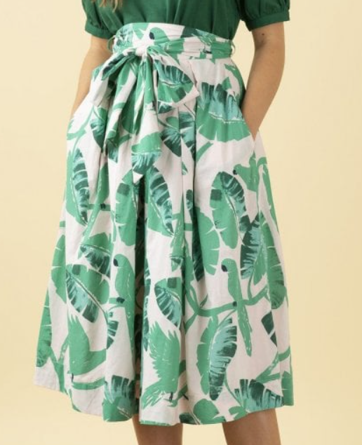 A true statement piece in Botanical Parakeets. This full skirt features a wide waistband for a flattering fit, deep pleats and hem facing for added fullness and weight. The star of the show is the wide bow waist tie, detachable for versatility. The Jemima skirt is fully lined, and finished with our signature concealed side seam pockets and an invisible center back zip to close.