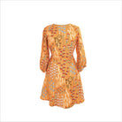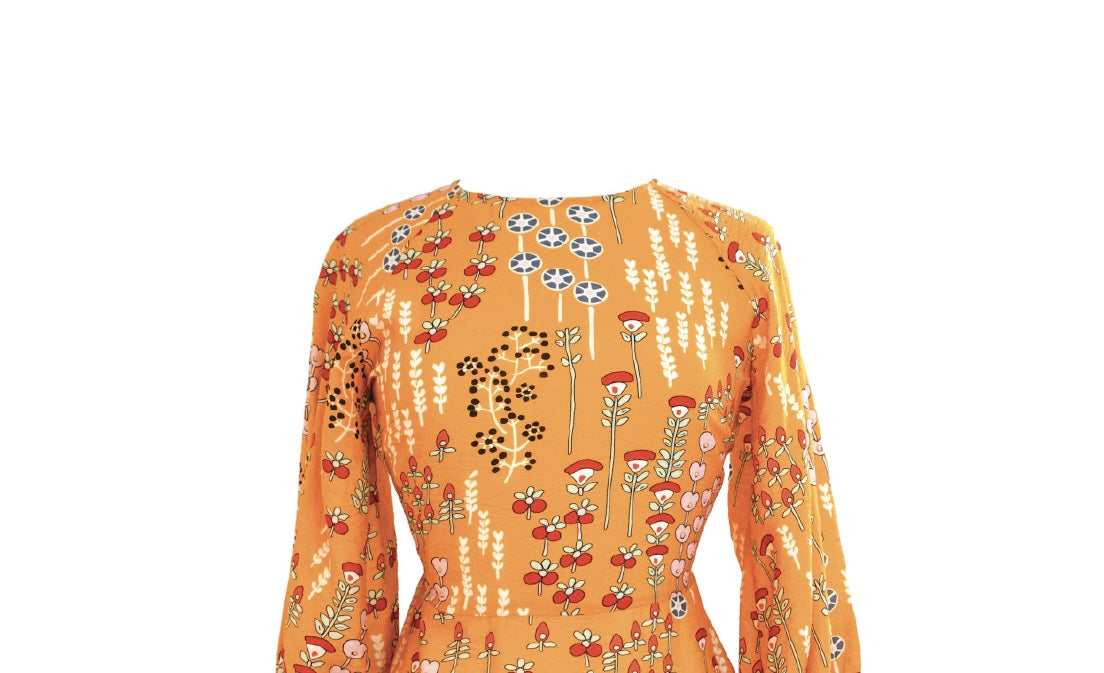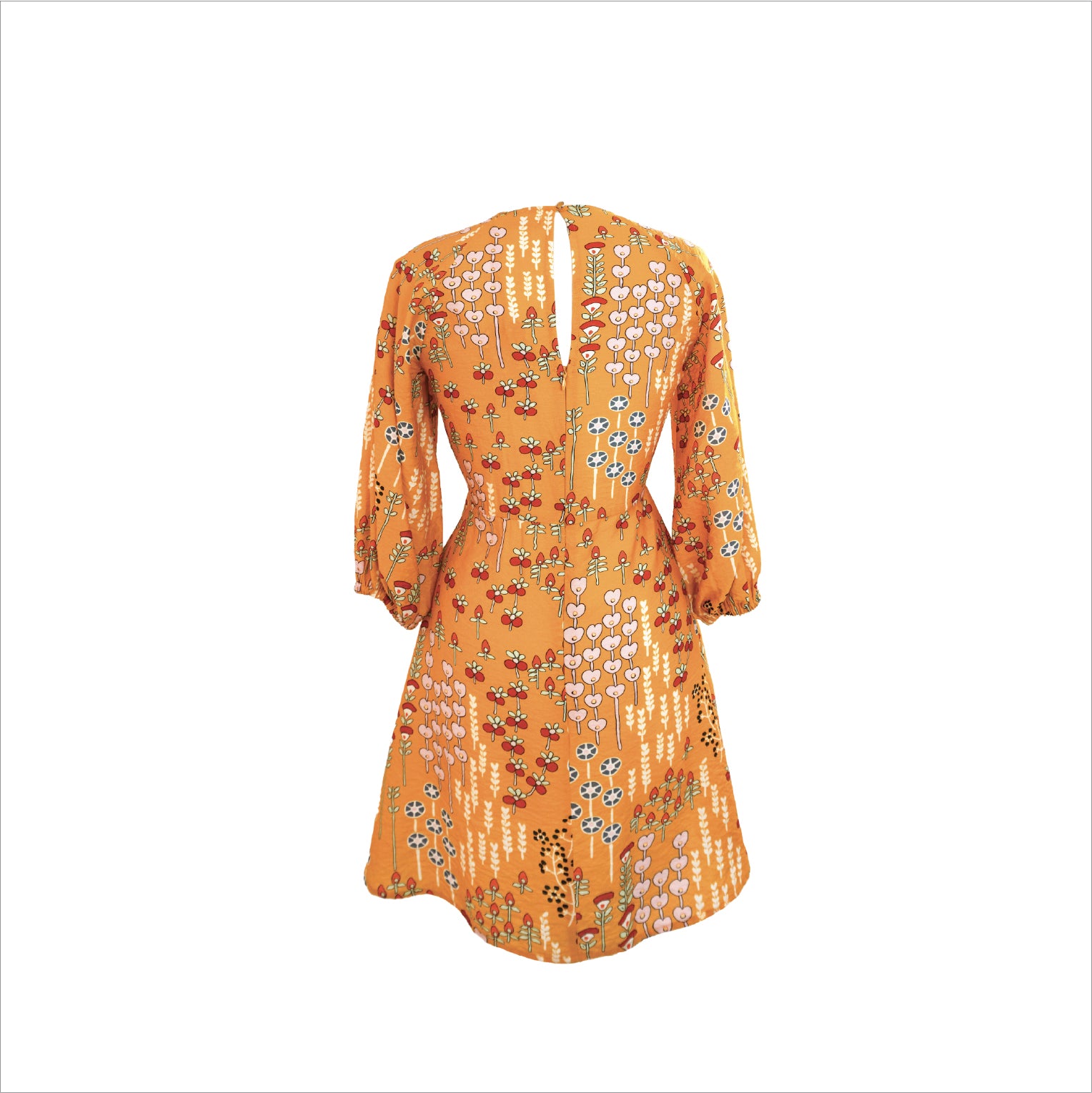 The Clara Dress in Mustard is the perfect Summer-to-Fall dress! Breezy enough for sunny days and perfect for layering with tights and jackets on the crisper days. The boatneck dress features puff sleeves and a flared hemline. A beautiful and flattering silhouette in a crisp folk art print. Quarter zip and peephole back fastening. 50% Viscose, 50% Polyester