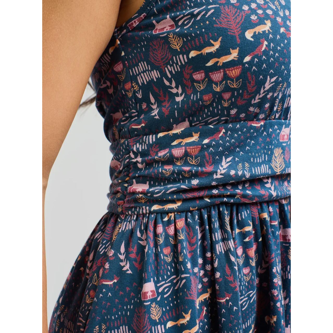 This fox dress is so cute! It is made out of fair trade organic cotton, with just enough elastane to give it some stretch, perfect for days where you want to be comfortable without sacrificing your style! The sweet fox print is accompanied by a rich navy blue background, and this dress is sleeveless, the combination makes it perfect to wear through all seasons.