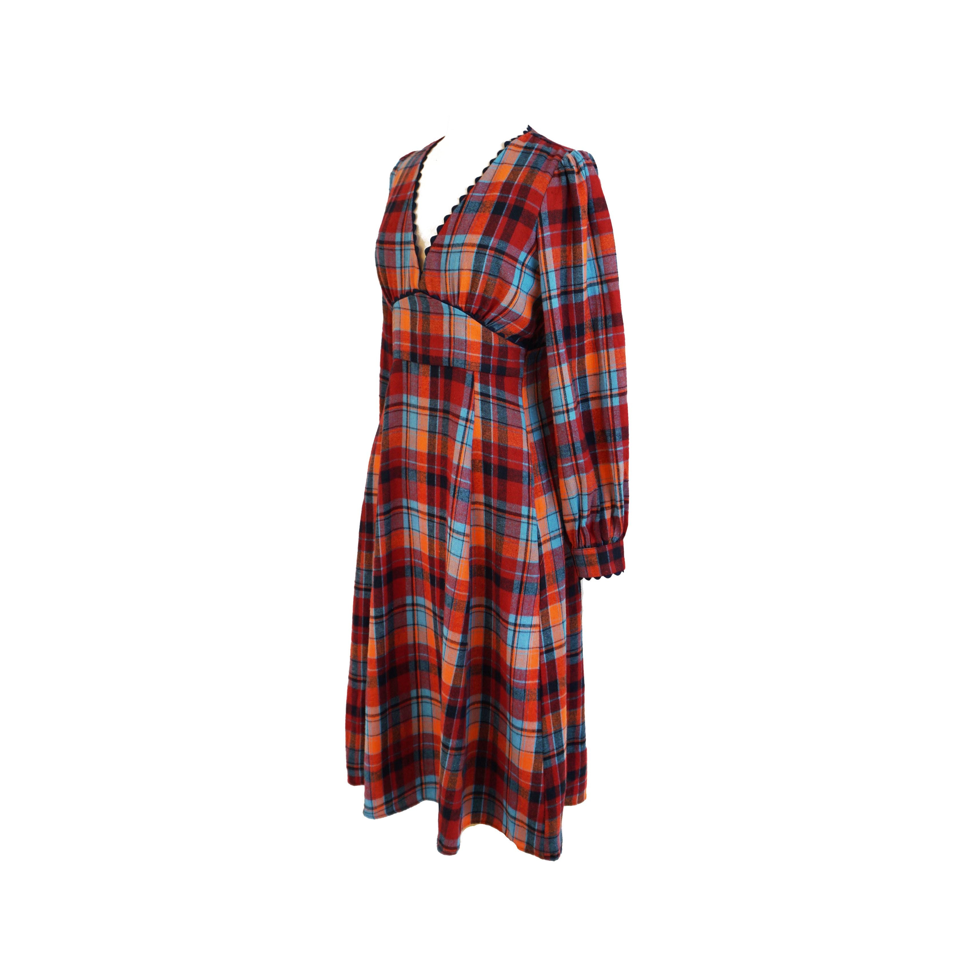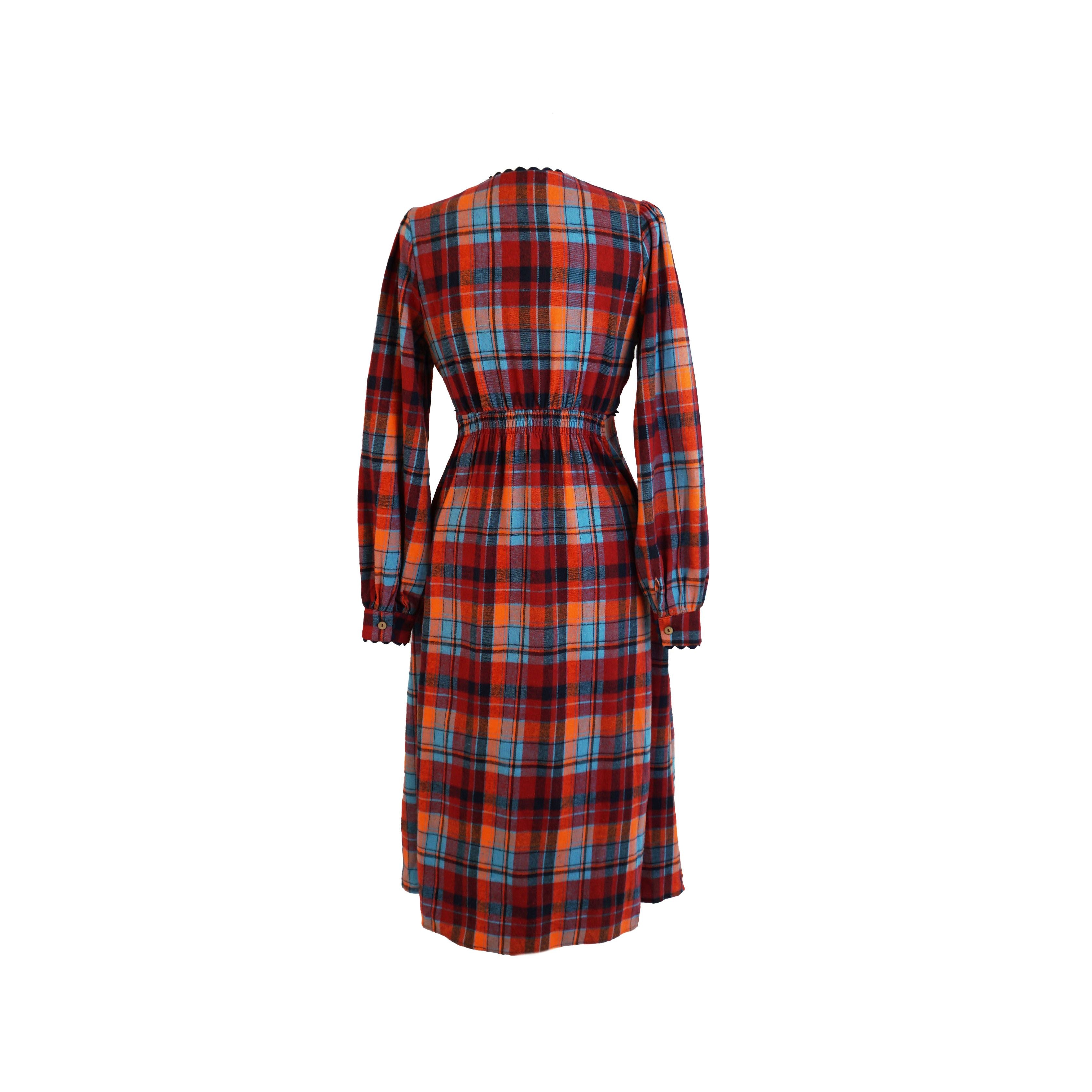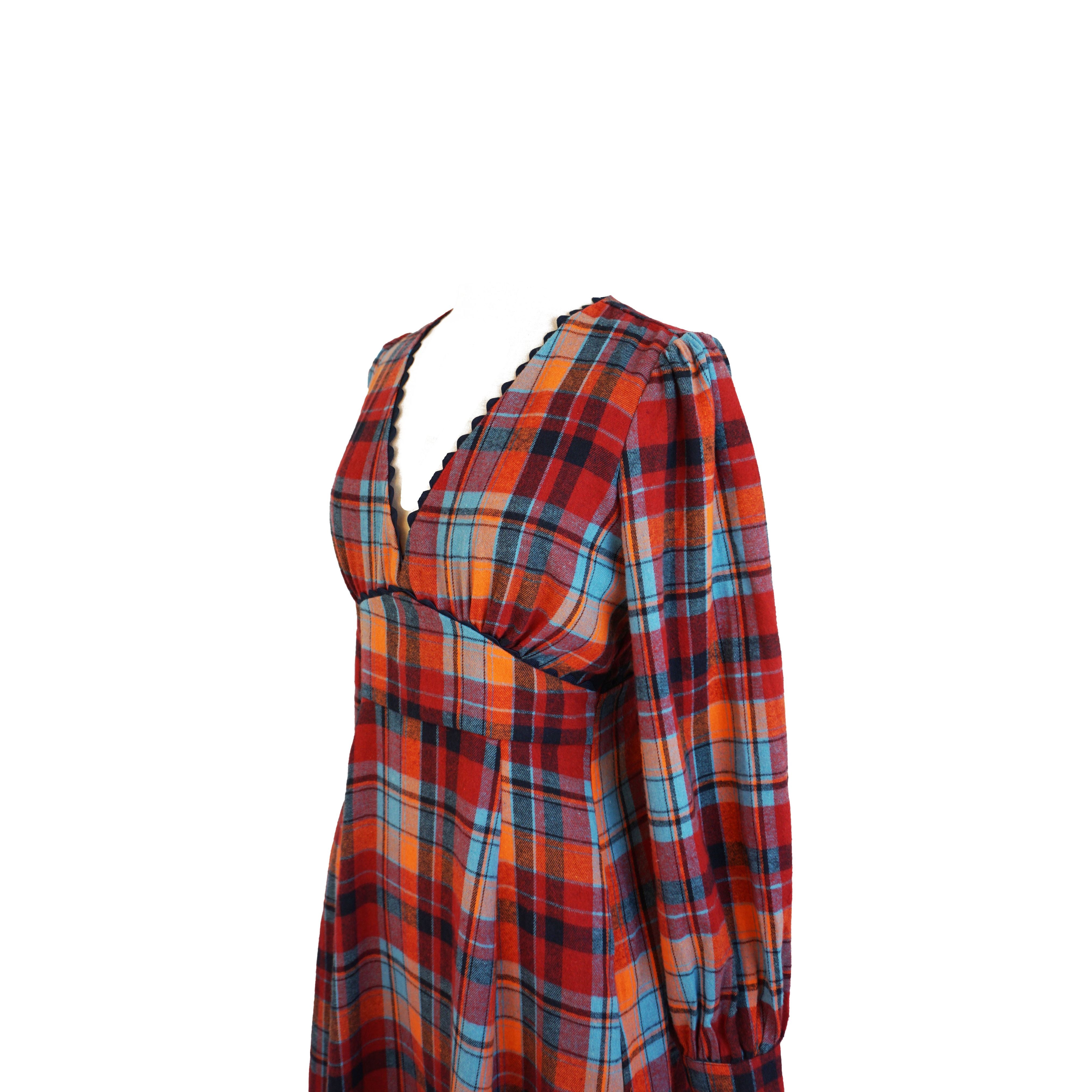 Look stylish and autumn ready in the Marize Tartan long sleeve midi dress. Crafted from a soft warm brushed check with navy, turquoise, red, and apricot hues, the V-neckline features a Ric rac trim for extra detail. Featuring wide billowing sleeves, an elasticated back waist for ease and definition, and deep pockets.