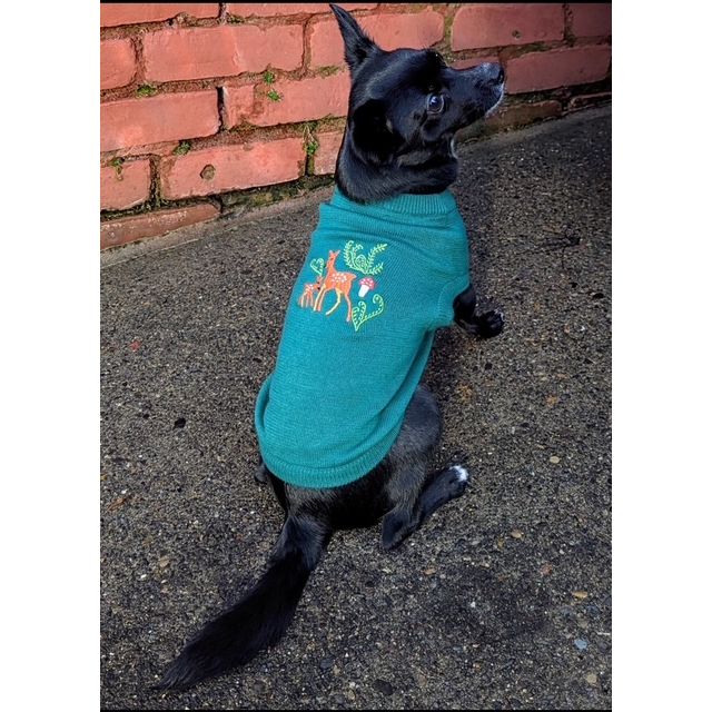 Embroidered Deer Teal Pet Sweater