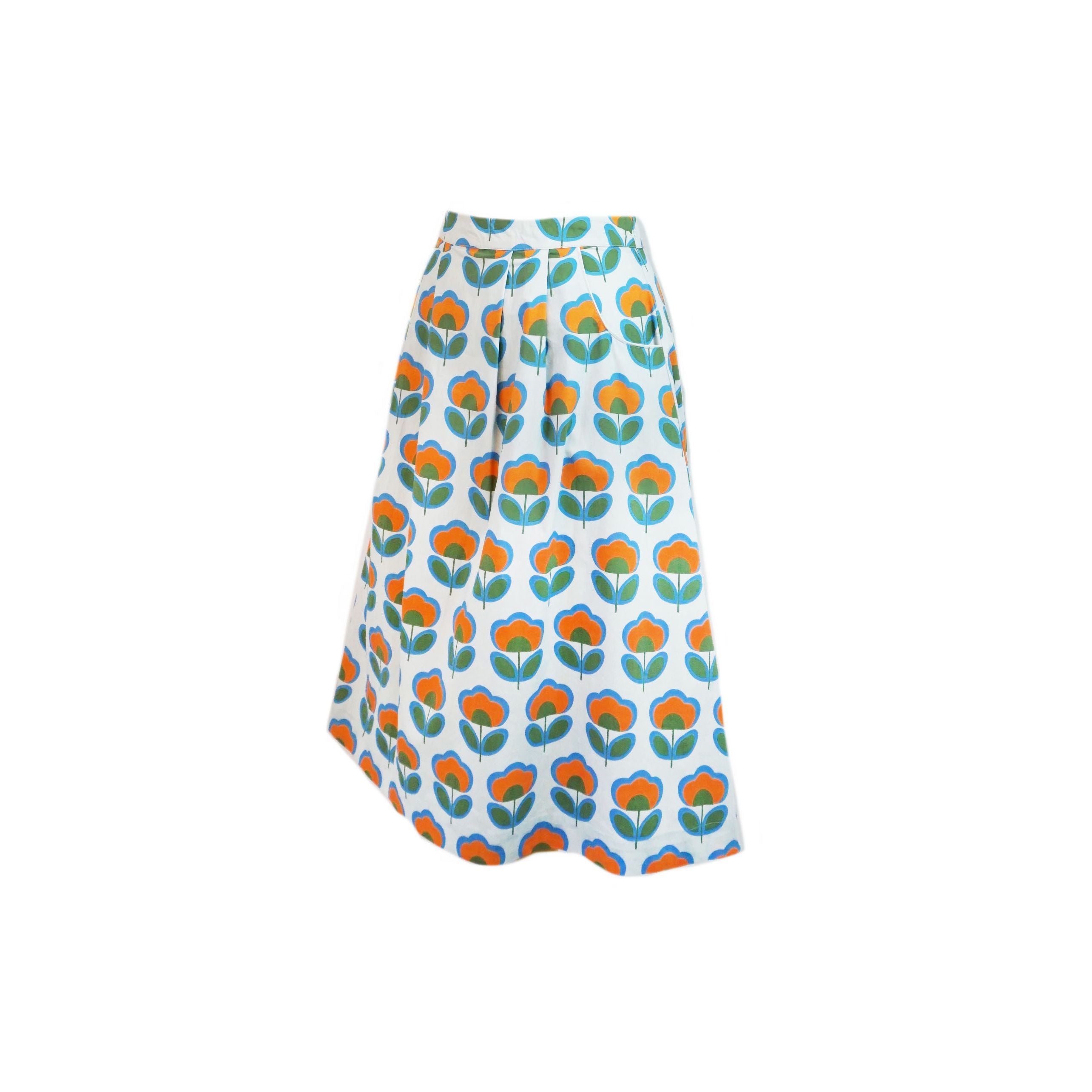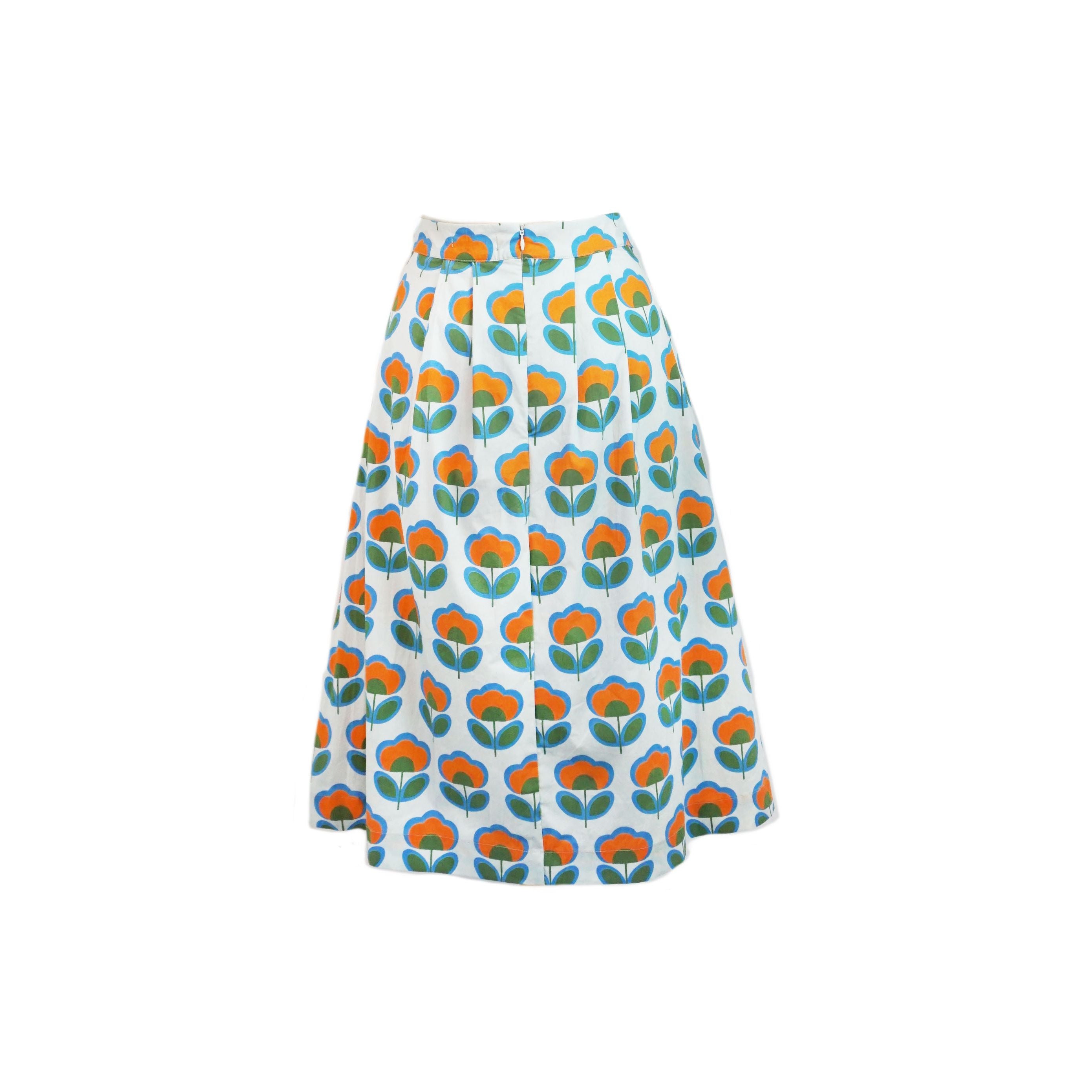 Vintage Tulip Lined Cotton Skirt
