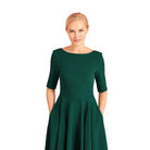 The Hepburn Swing Dress is one of our most elegant offerings. The high neckline, low V back and circle skirt make it a flattering fit on all body types. The fully lined dress also features stretch control lining, pockets, and a concealed zipper. It is the perfect piece for a range of occasions, from a regular day at the office to an evening event as well as the perfect outfit for attending a wedding. It's high neckline will compliment your bust and the 'V' neck back will create an elegant silhouette whilst making you feel glamorous. Designed to flatter your figure, the Hepburn will bring you in at the smallest point of your waist and then float into a full circle skirt. This will be a dress you will want to have in your closet for decades.