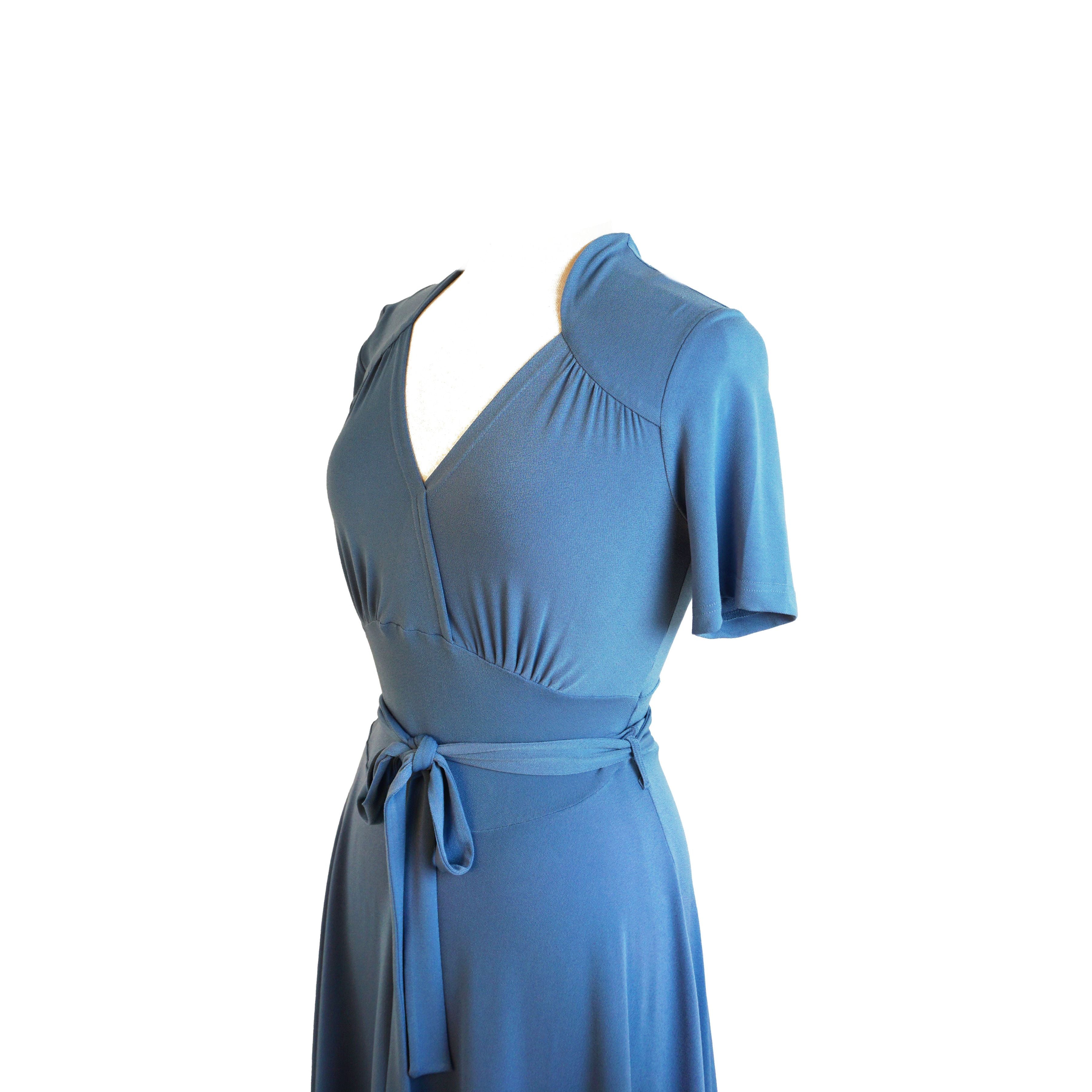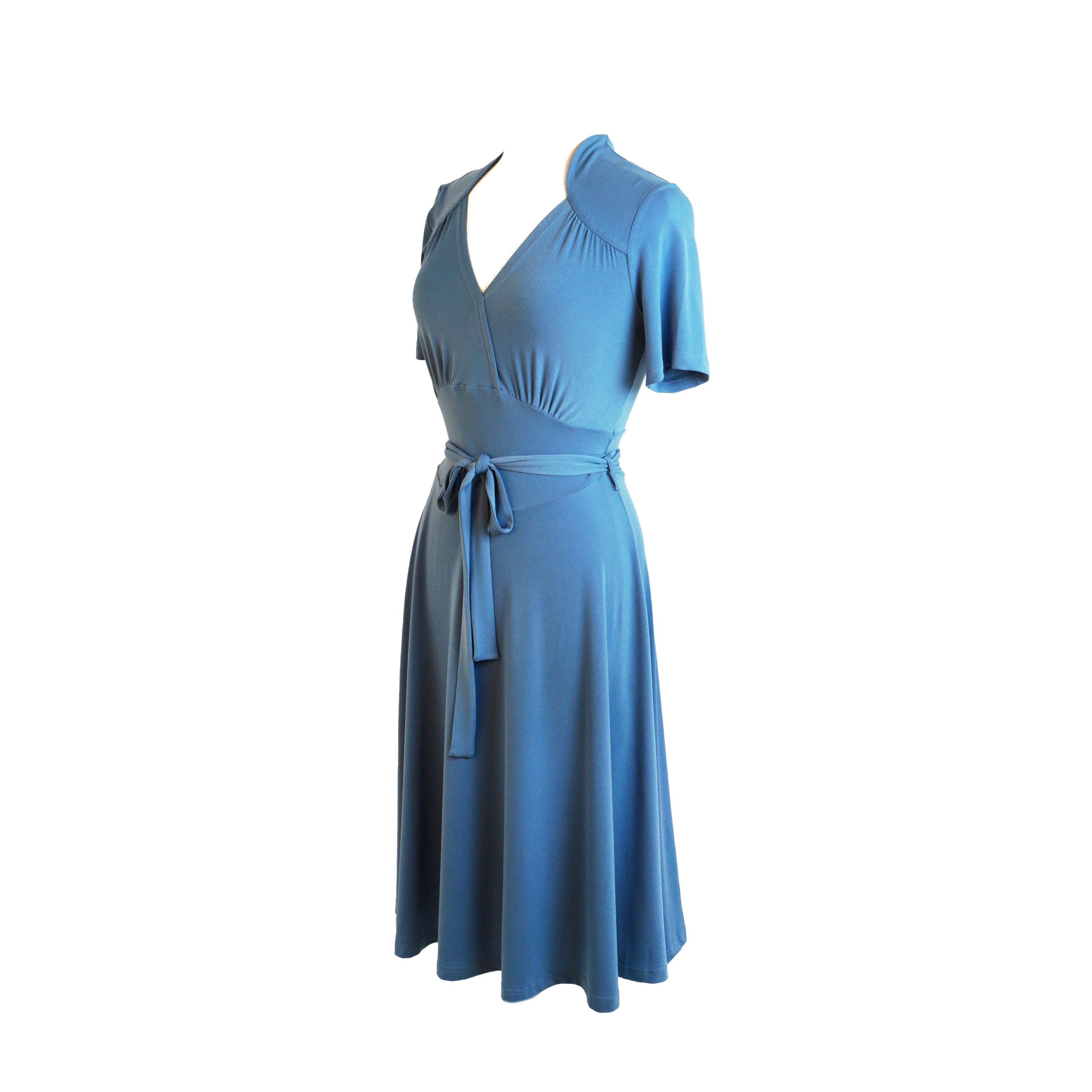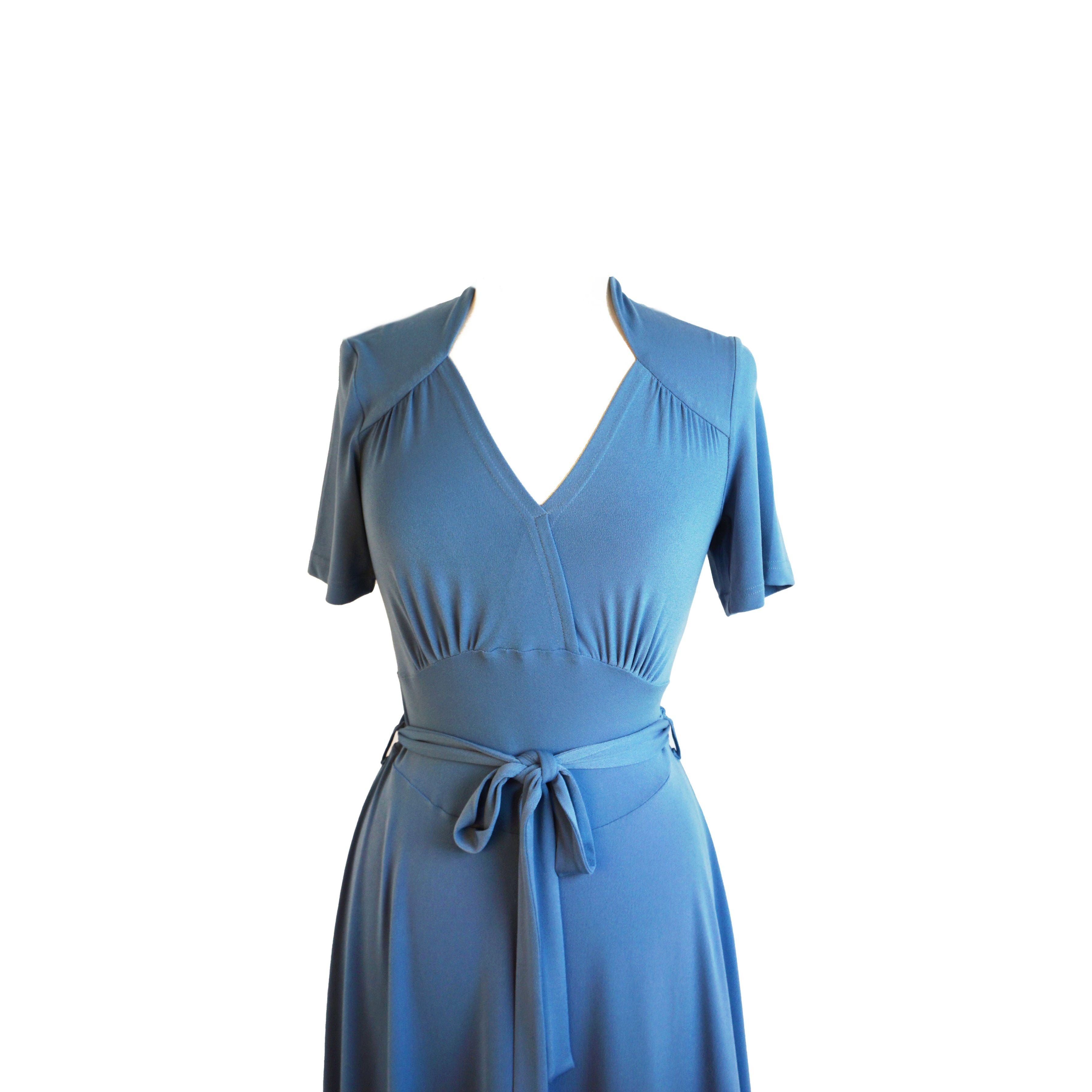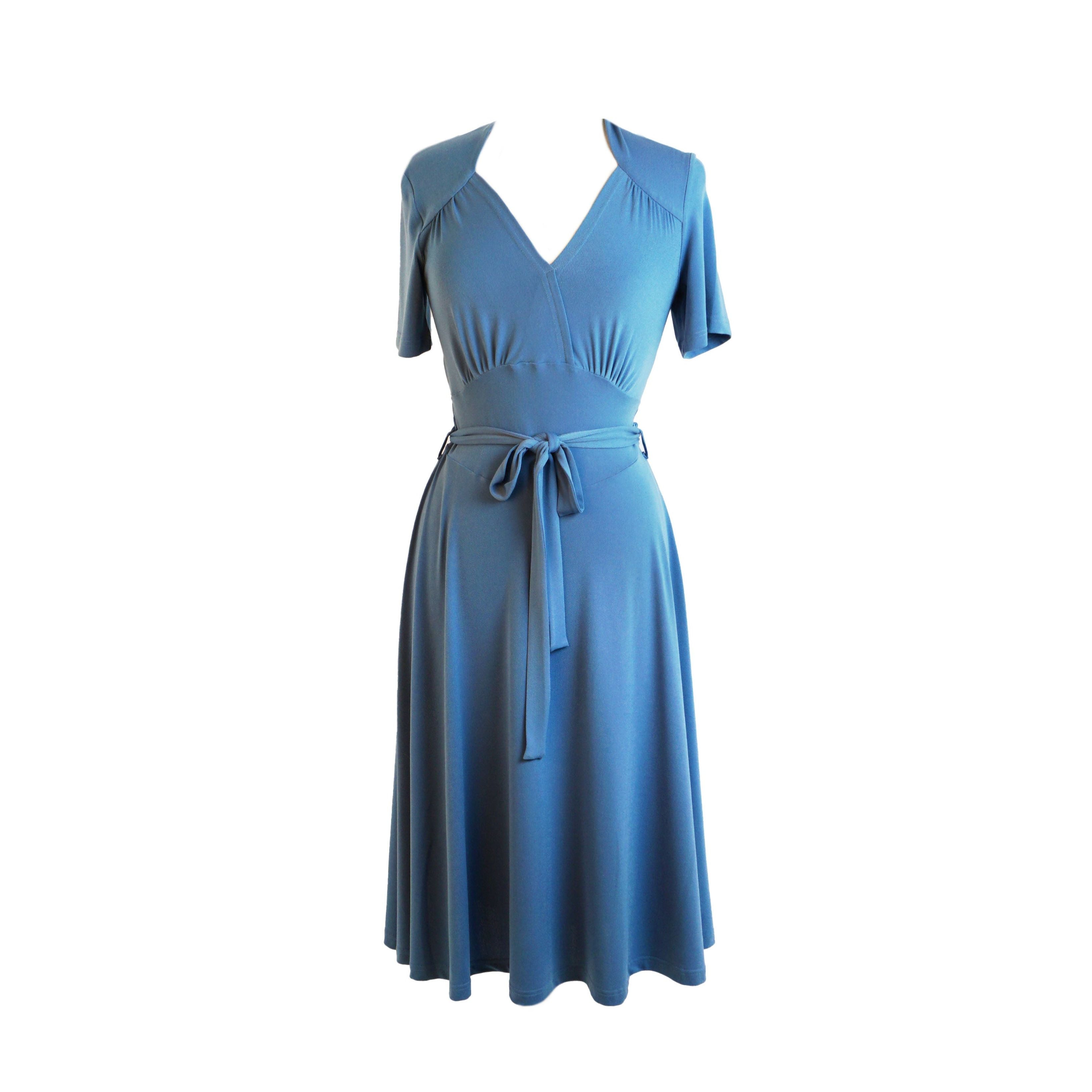 This gorgeous airy blue dress is full of old Hollywood charm! The stunning sweetheart neckline and flared skirt will have you feeling like a movie star, but the light polyester fabric with a slight stretch will keep you comfortable all day long.