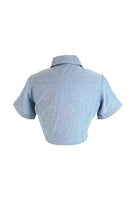 Who doesn't need a neutral short sleeve tie top to wear with a high waisted skirt or pants? even better when it's made sustainably and shows off your waist with a cute bow. Chambray just might be our new favorite neutral!