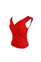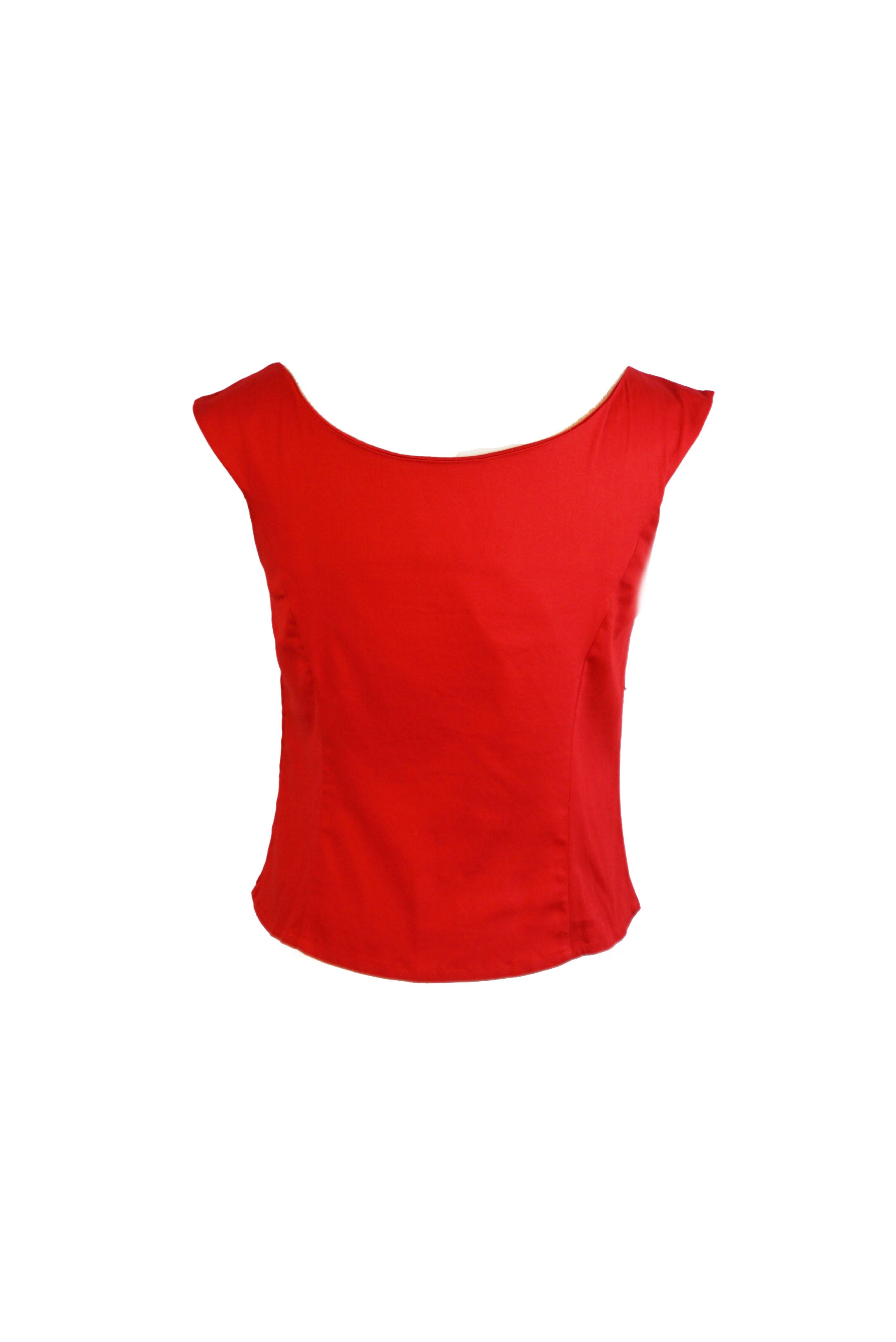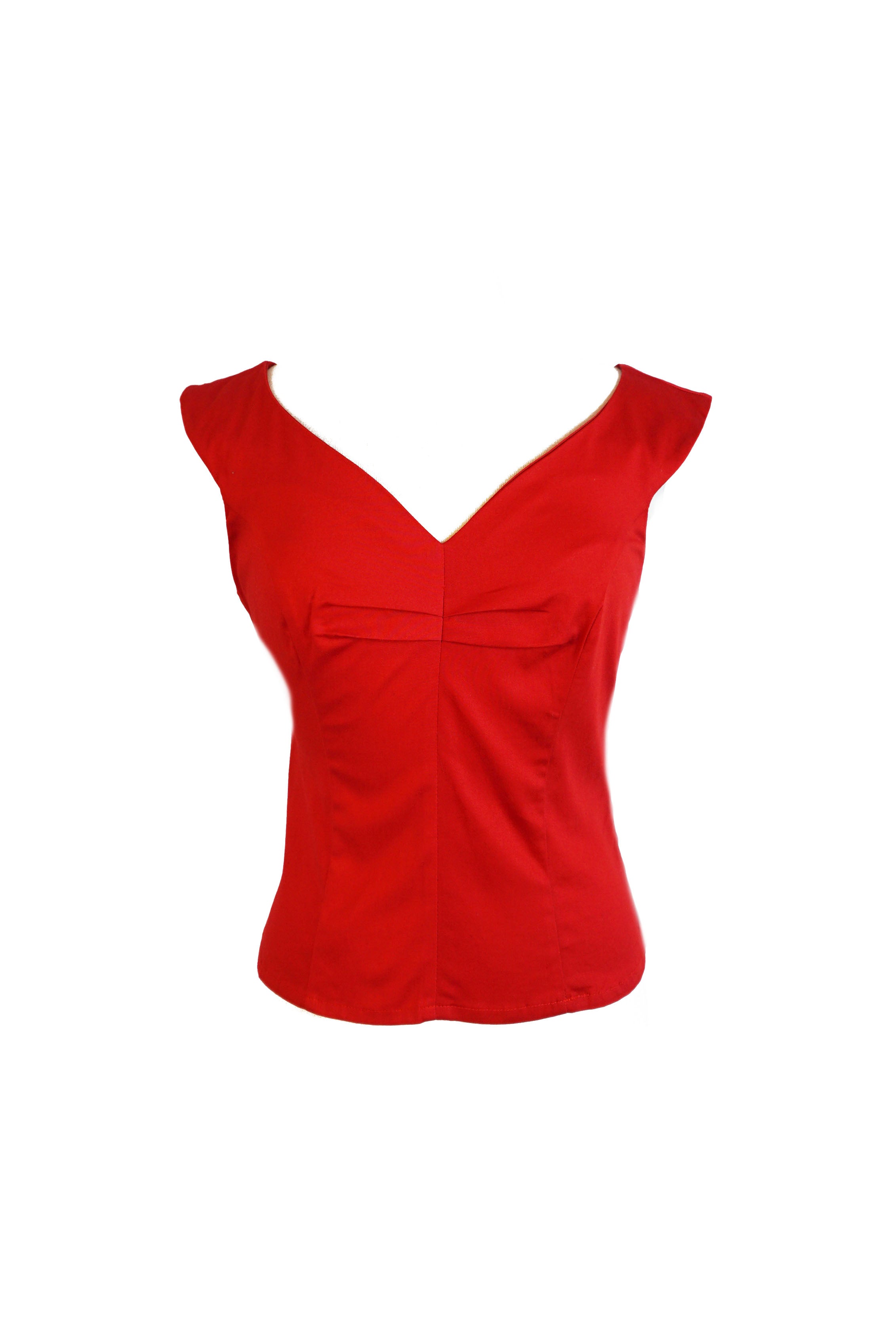 This beautiful sleeveless top is made of cotton stretch sateen and has a wide sweetheart neckline. It's fitted bodice with side zip opening looks great tucked or untucked. The vintage style looks great with high waisted shorts, skirts and pants.