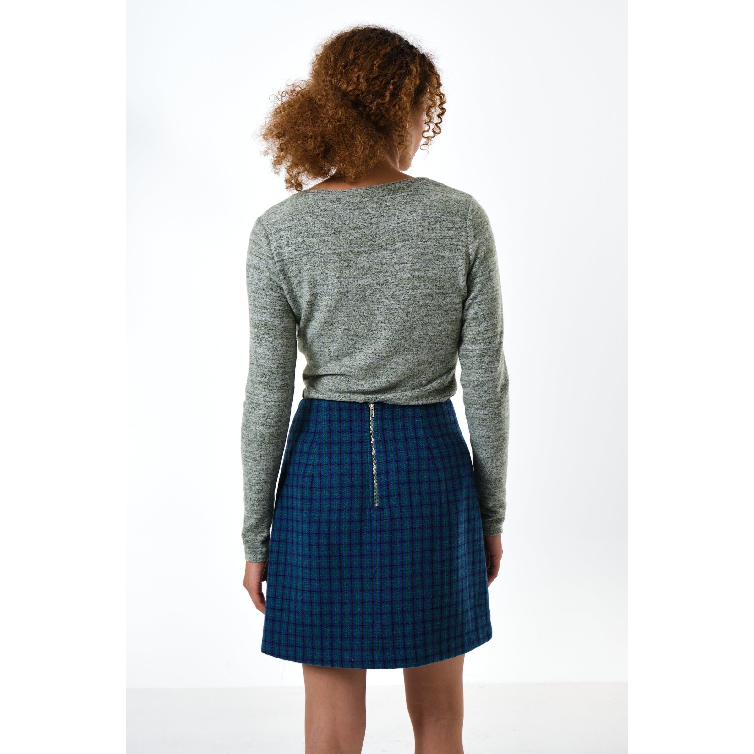 Your Fav Aubin A-line skirt is now in a brand new wool rich blue, green and black check. This transitional style will see you in style all the way through spring. It could easily be teamed with almost any black top you have in your wardrobe.