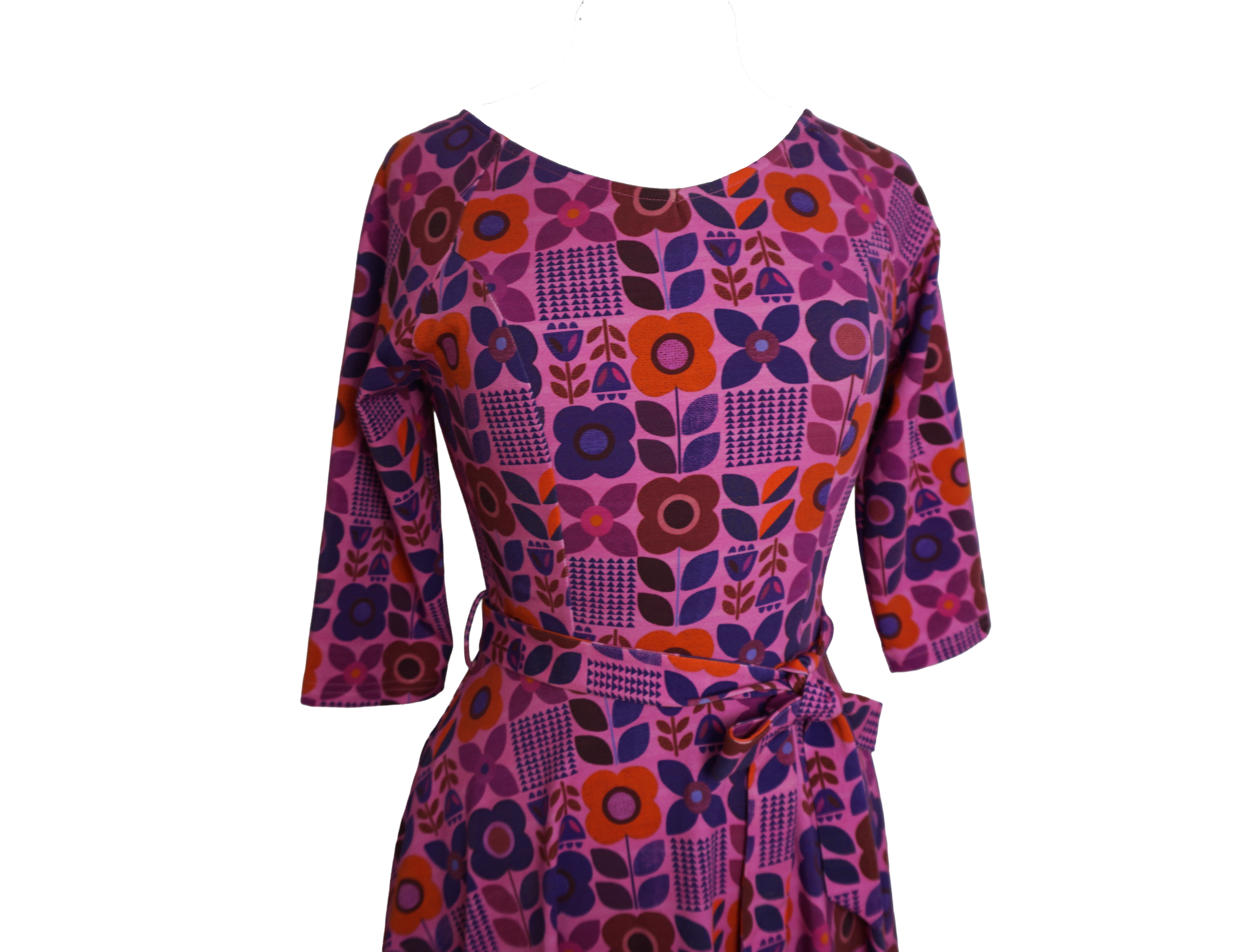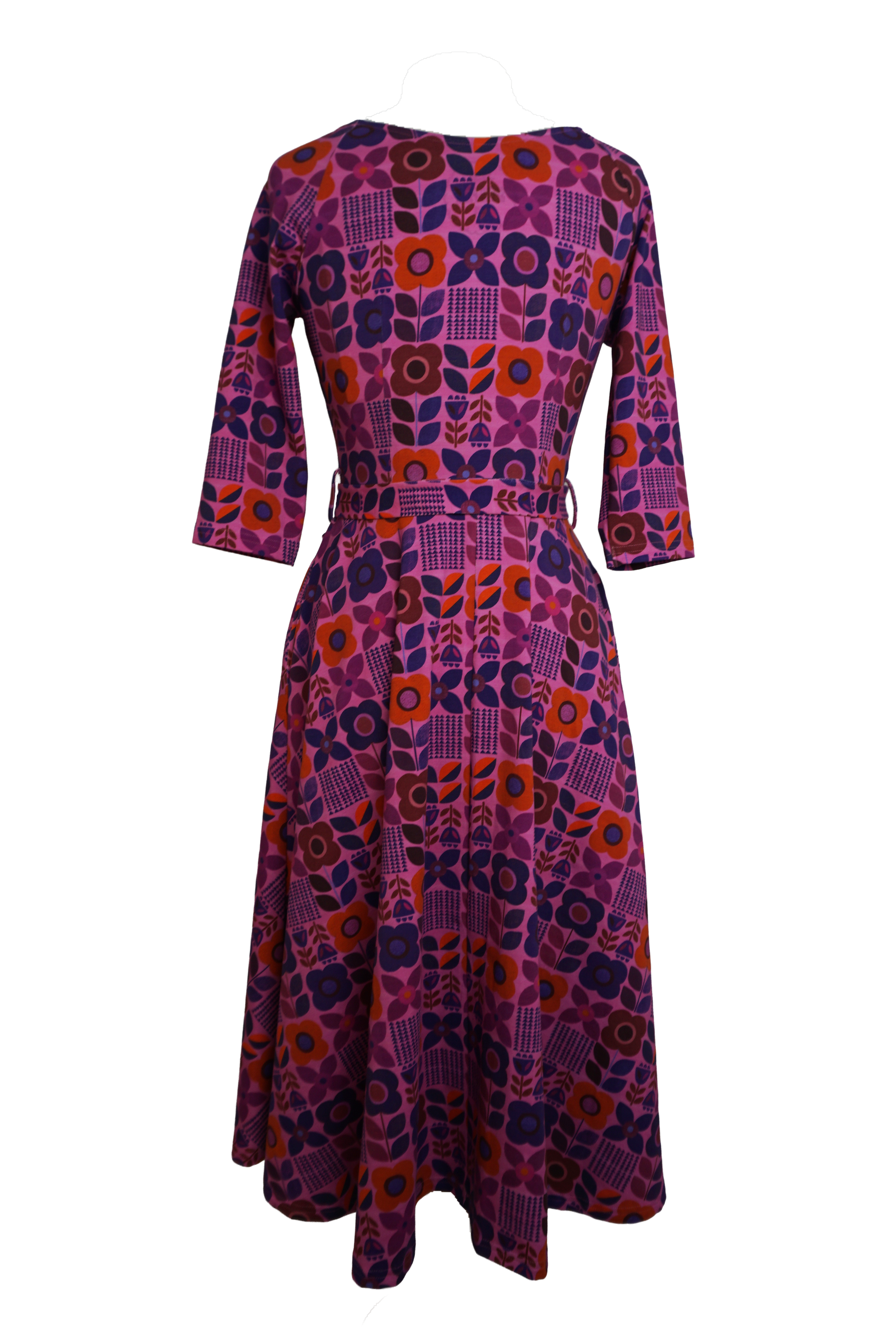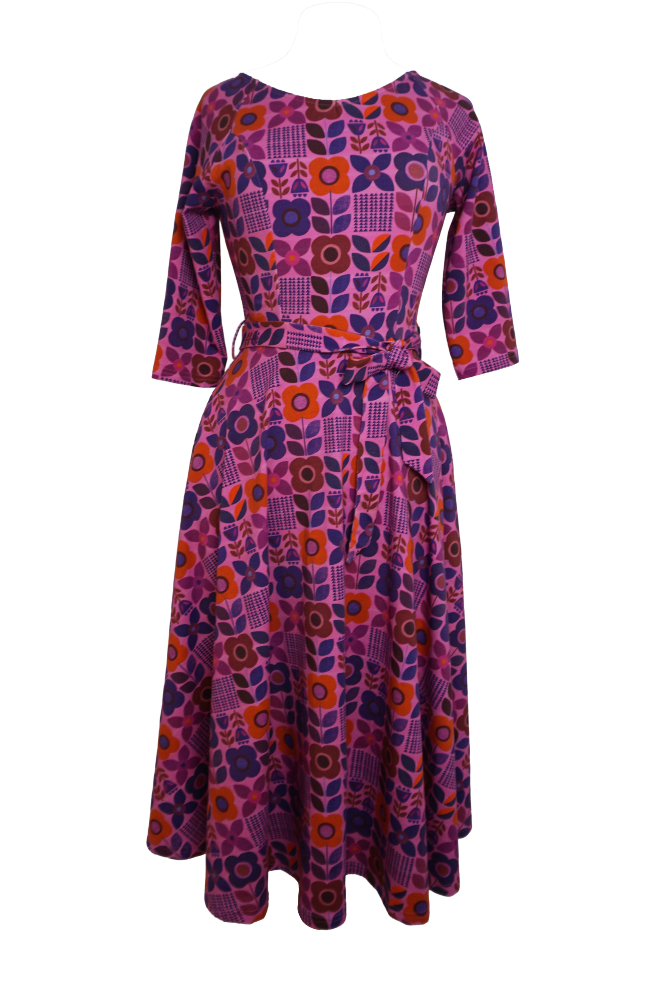 This playful cotton jersey dress features a bright retro floral print that adds a fun pop of color to your wardrobe. With plenty of stretch, it offers a comfortable fit that moves with you, perfect for all-day wear. The Berry Tile Print Jersey Dress combines vintage charm with modern ease for a lively, effortless look.