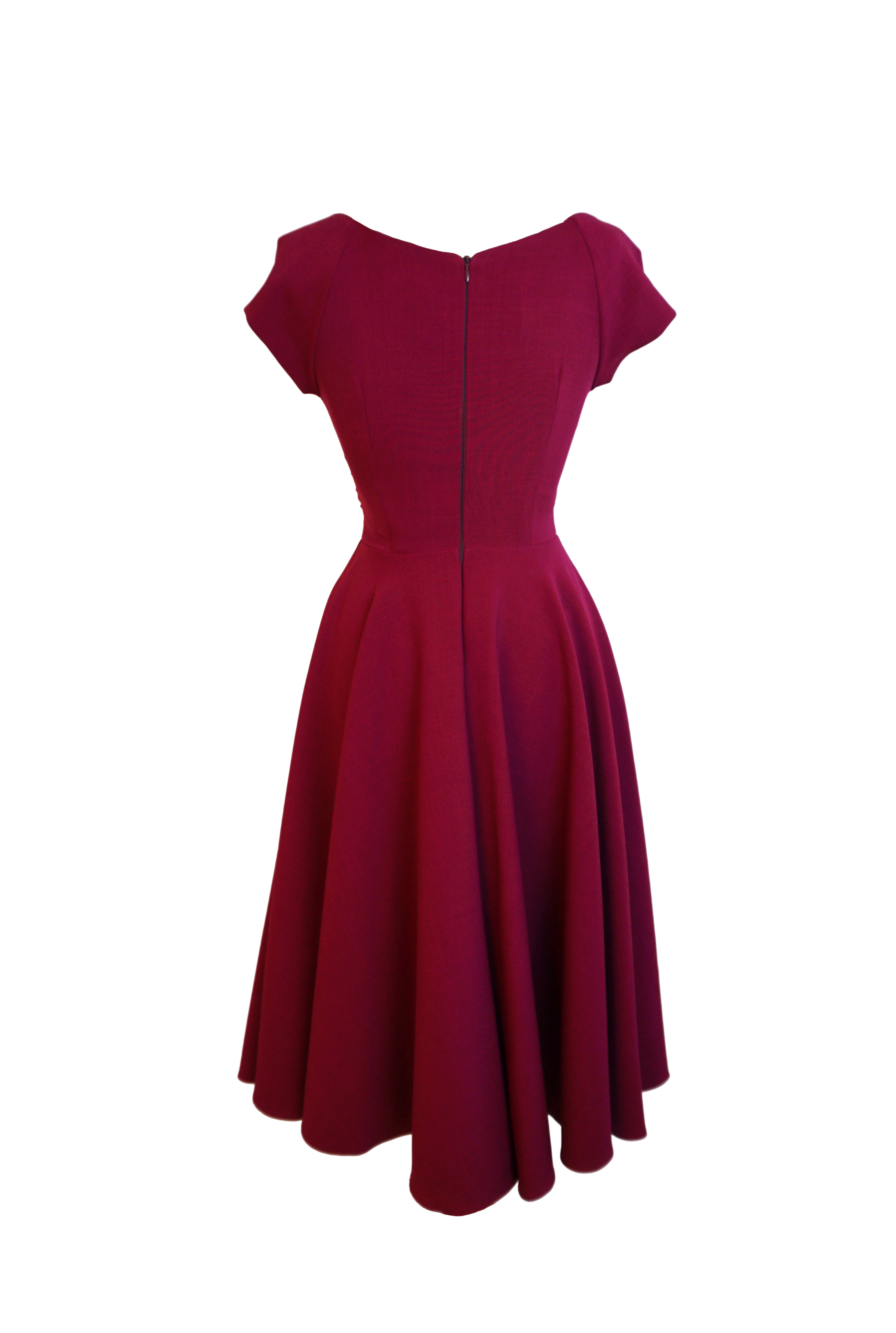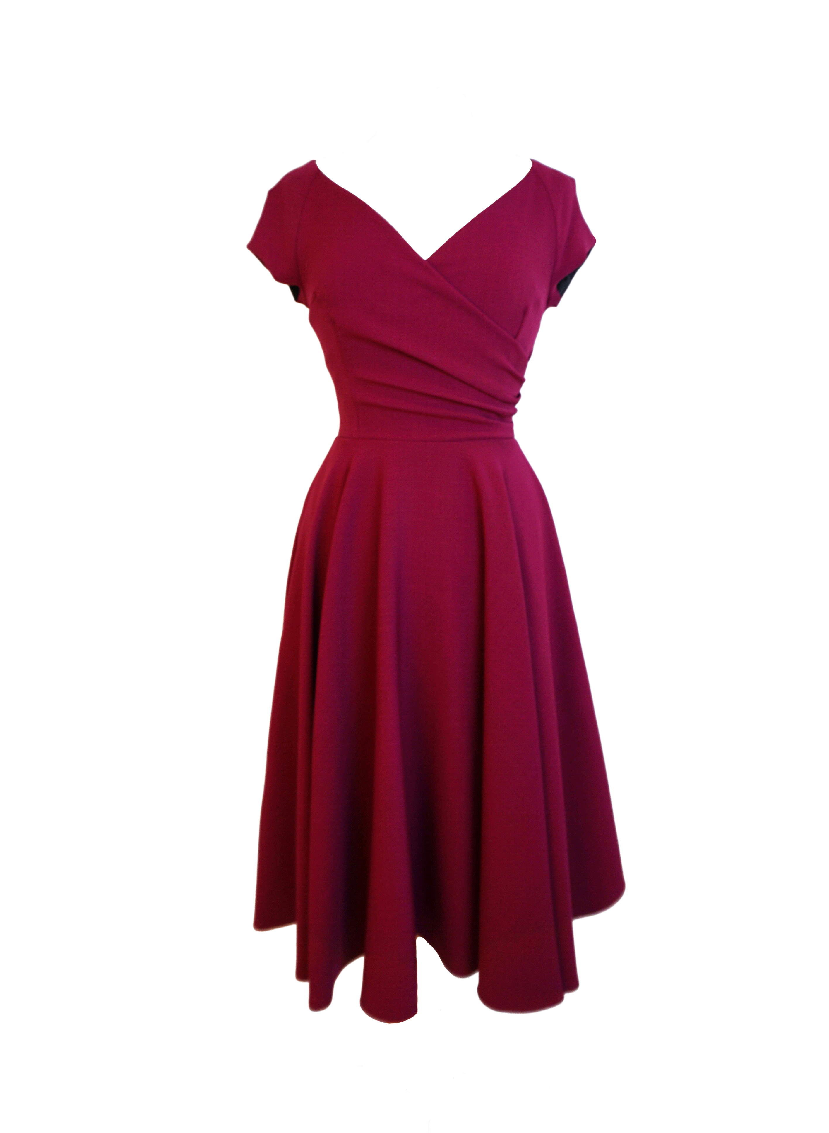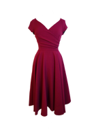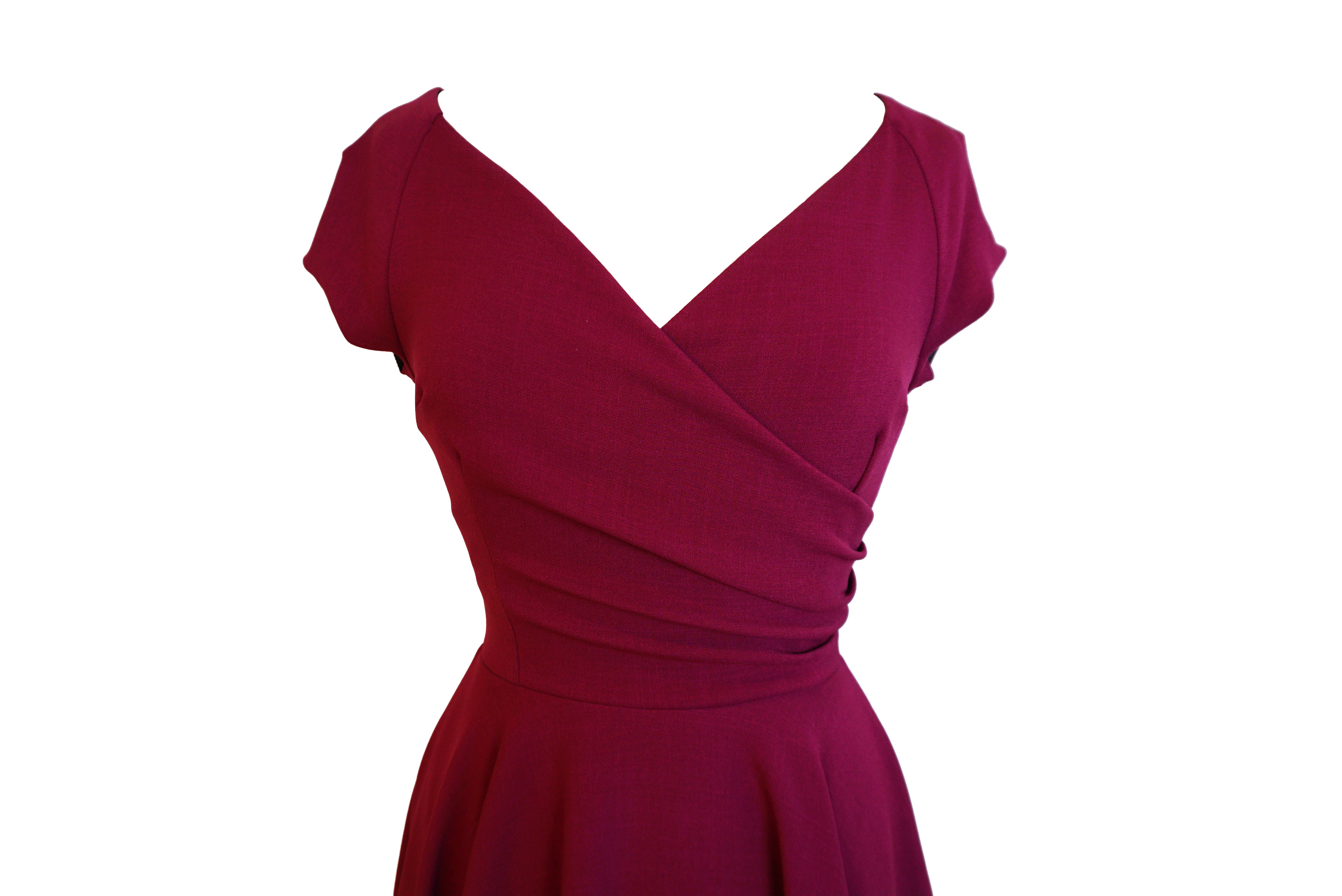The Hourglass Swing Dress in Berry is designed to flatter every curve with its faux wrap and stretch control lining that cinch at the waist. Its full circle swing skirt drapes beautifully over the hips, while luxe crepe fabric with a touch of stretch ensures comfort and elegance. Featuring handy pockets and a concealed back zip, this fully lined dress easily transitions from summer BBQs to bridesmaid duties, making it a playful and versatile addition to your wardrobe.