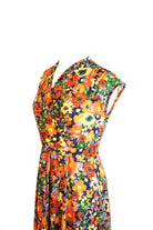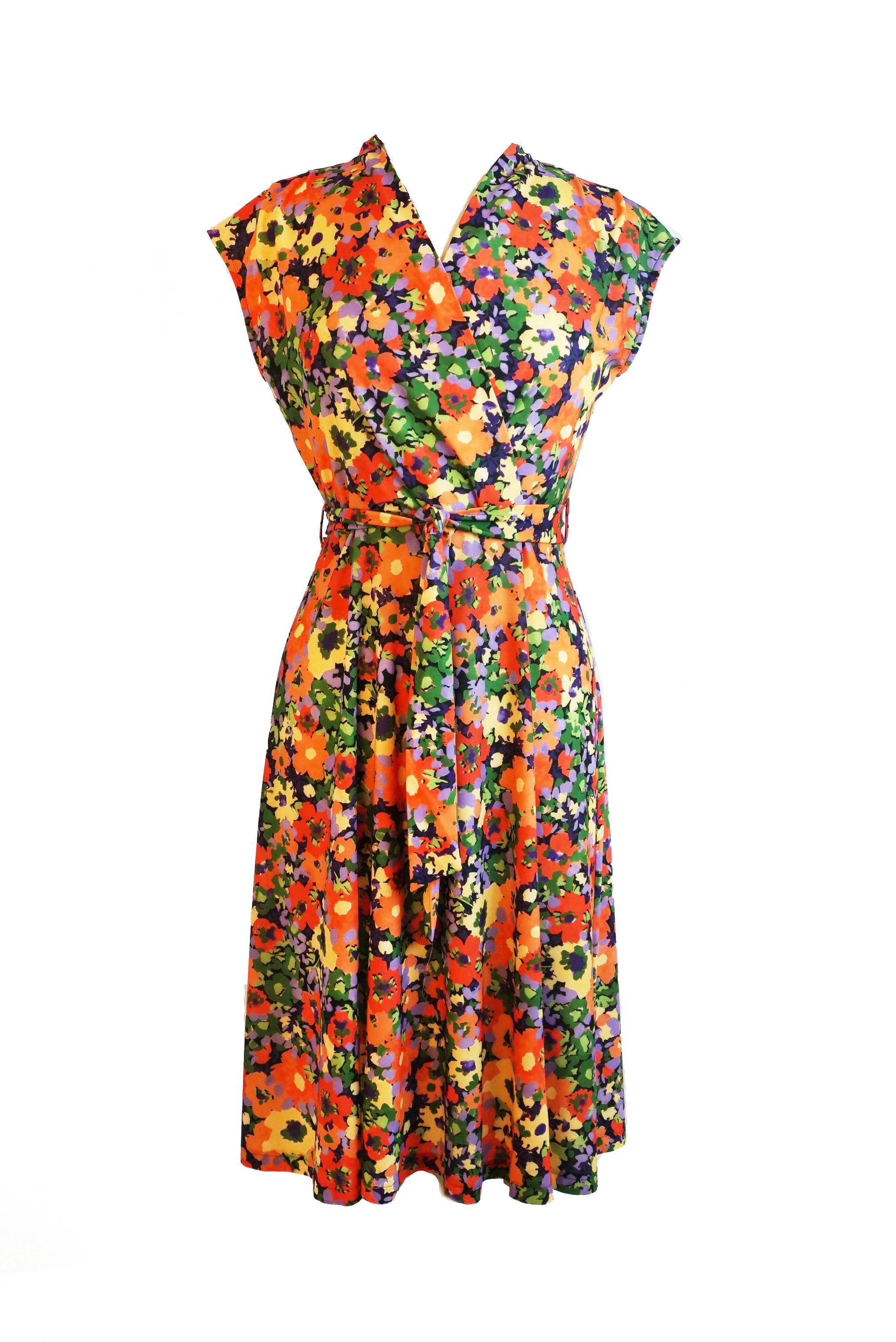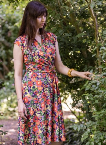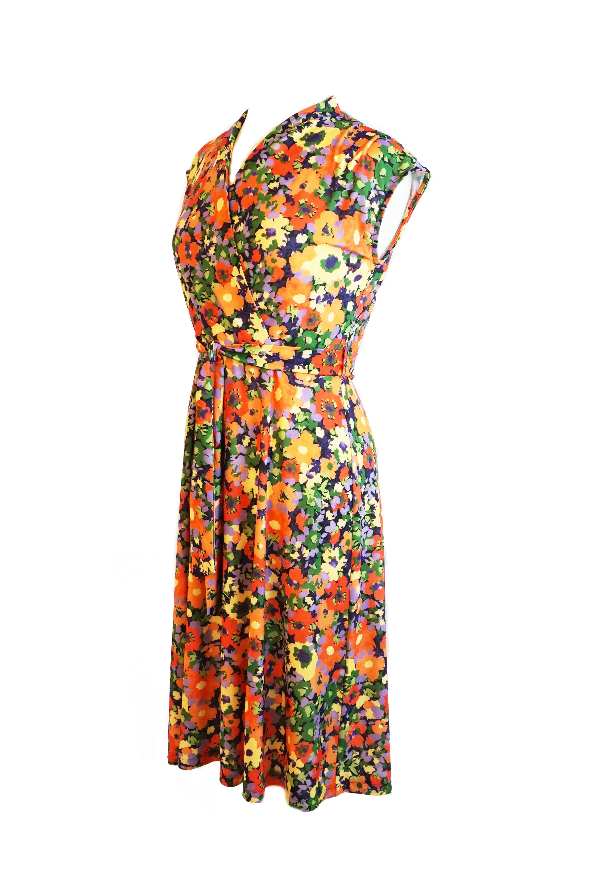 This dress is perfect for summer! The beautiful pattern is reminiscent of the sun setting on the rolling hills of Tuscany, and the material is so light and breezy with the perfect amount of stretch. This dress features a cross over top detail, and slight A-line skirt, which is sure to compliment all types of bodies!