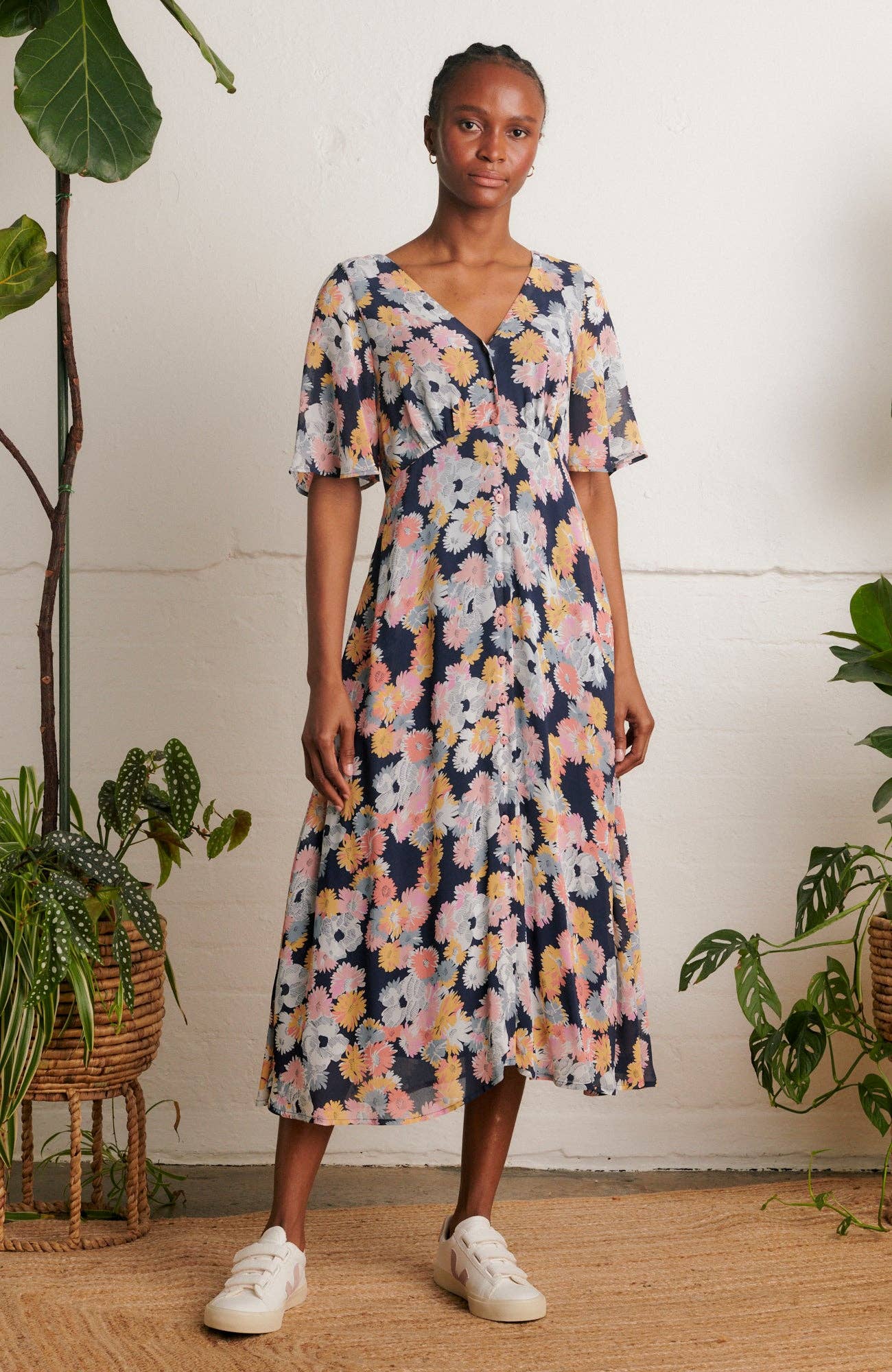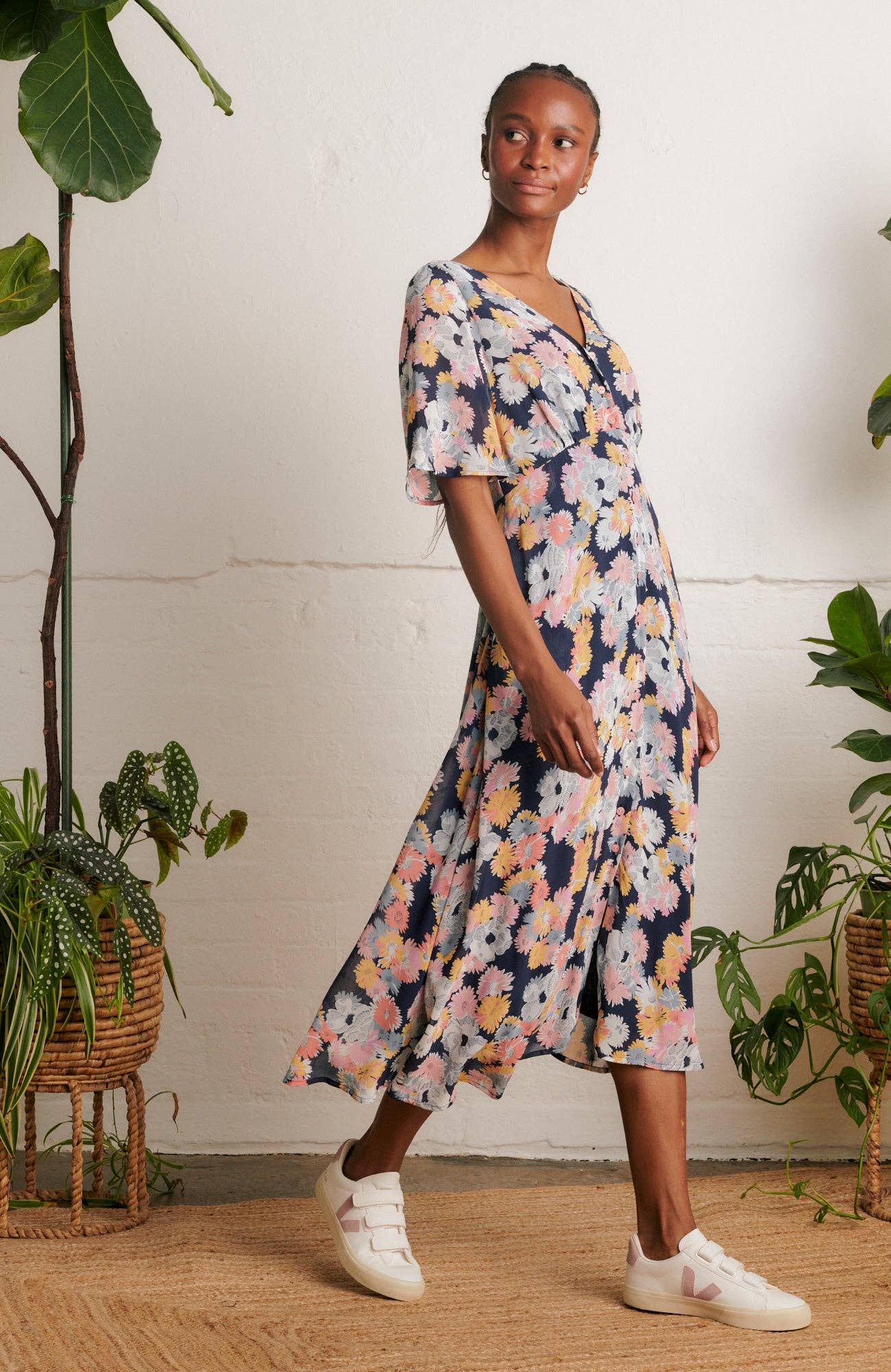 Our take on the timeless tea dress, the Fleur is a perfectly cut, button through dress style with a flattering V-neck to the front, echoed with a soft V at the back. The gently fitted bodice and concealed side seam pockets make this practical as well as elegant with the short, flowing sleeves and subtle gathers under the bust creating beautiful, feminine details.