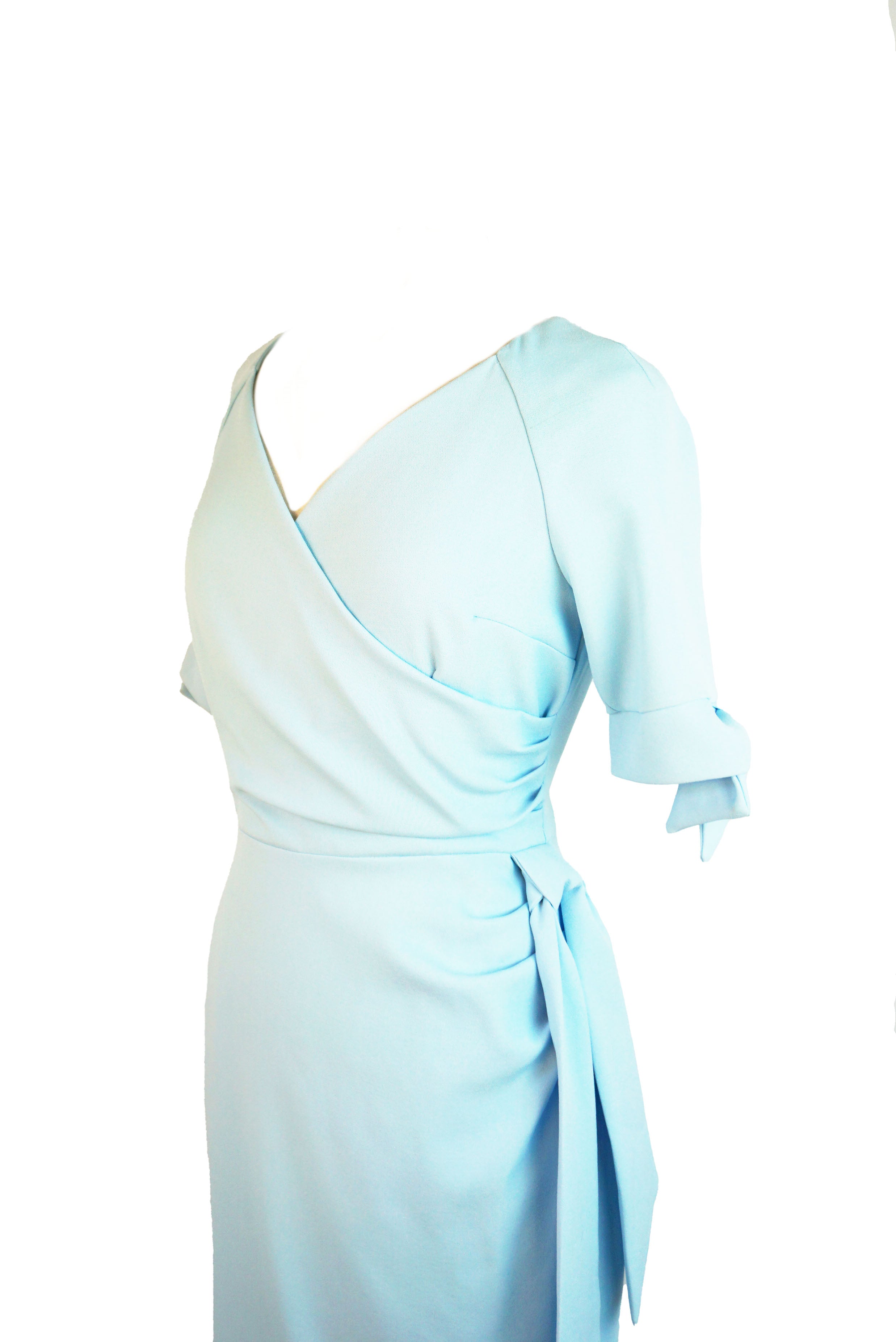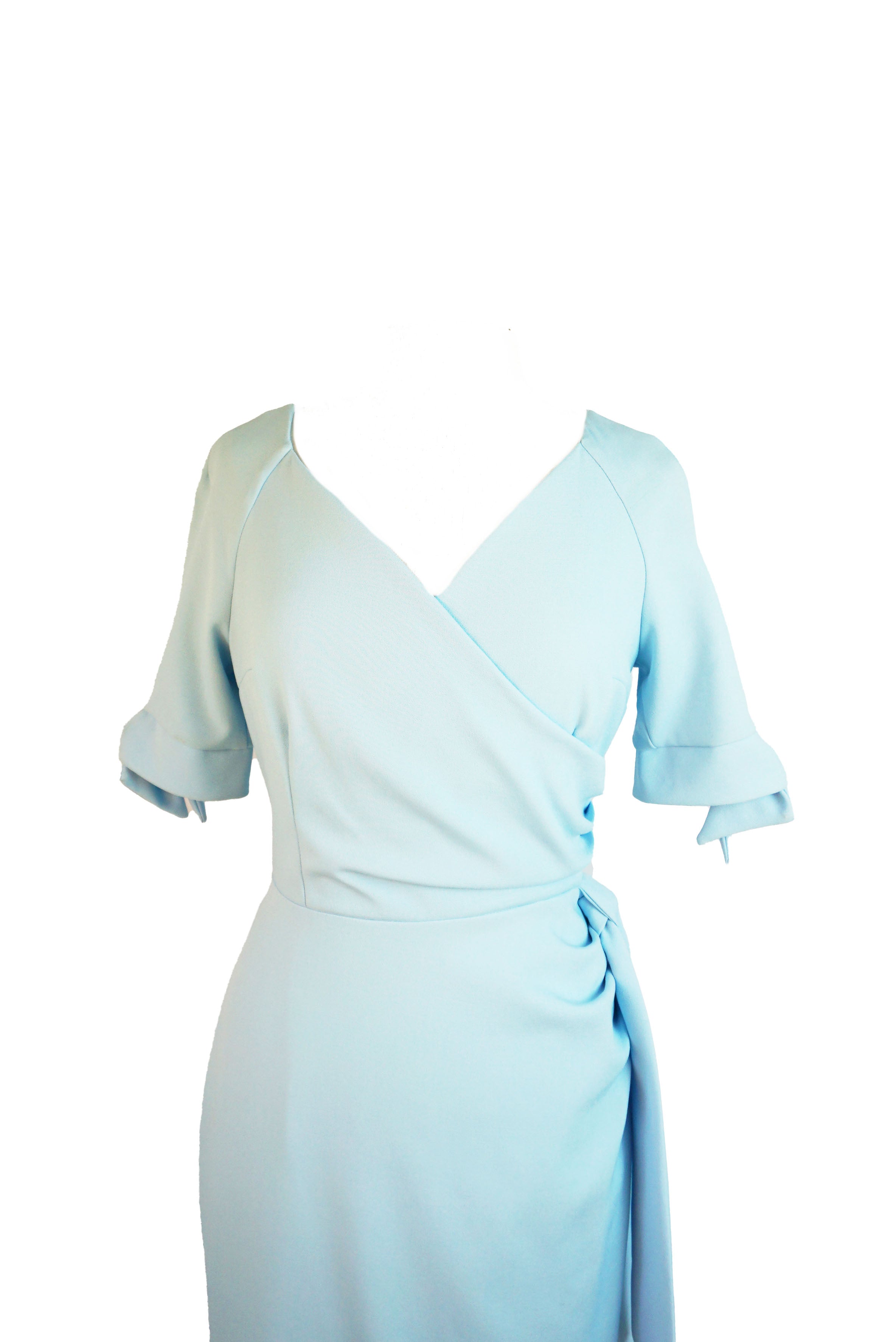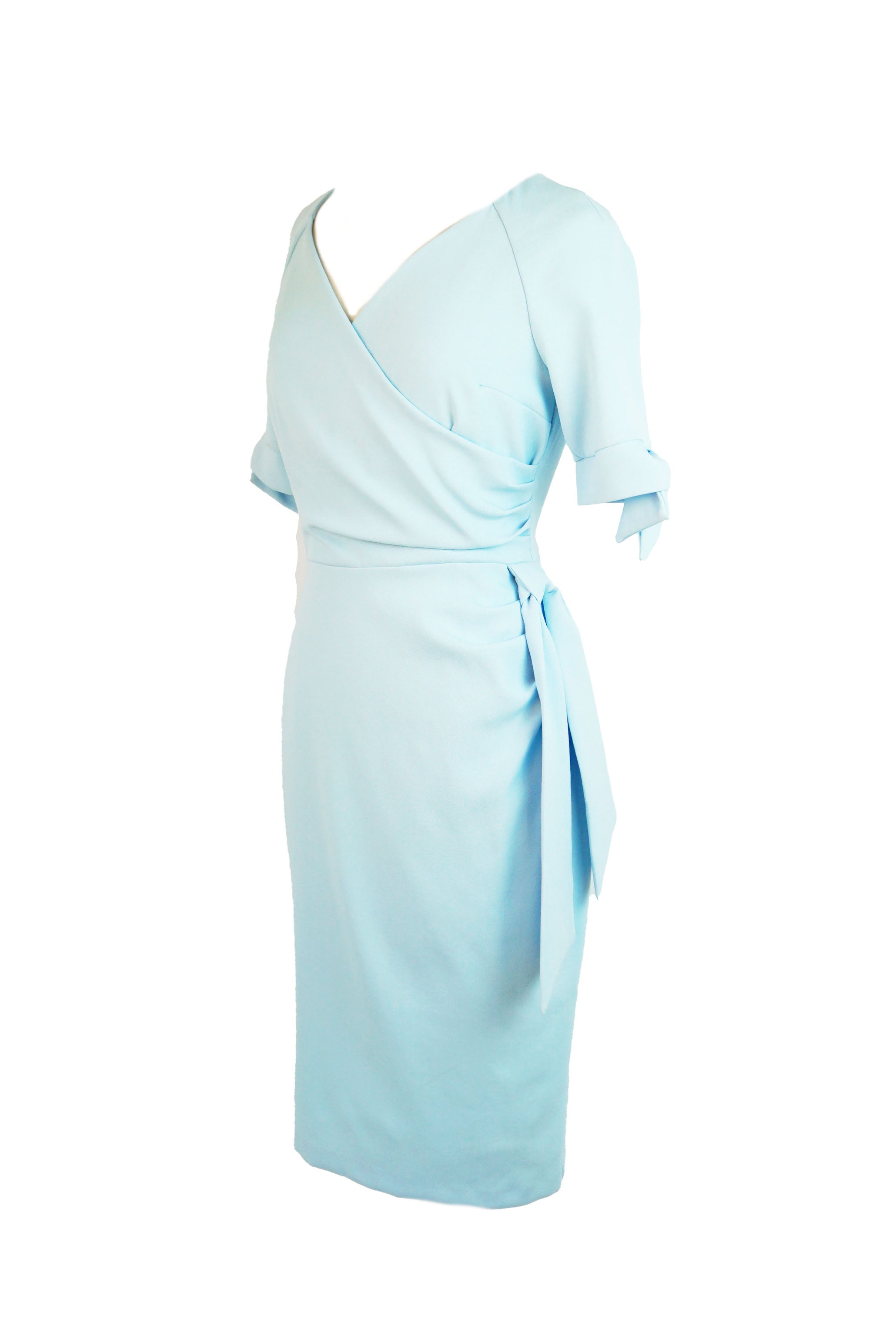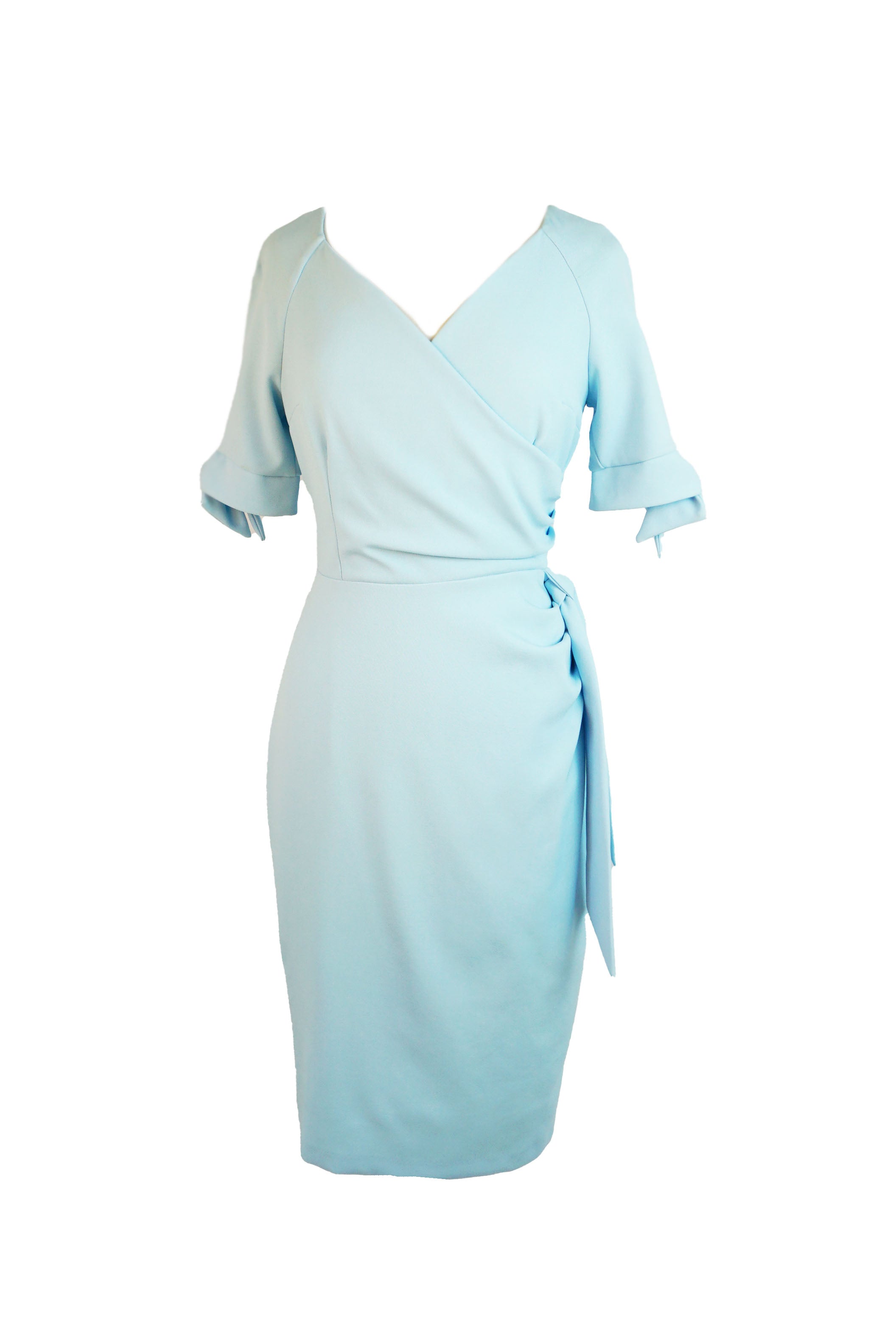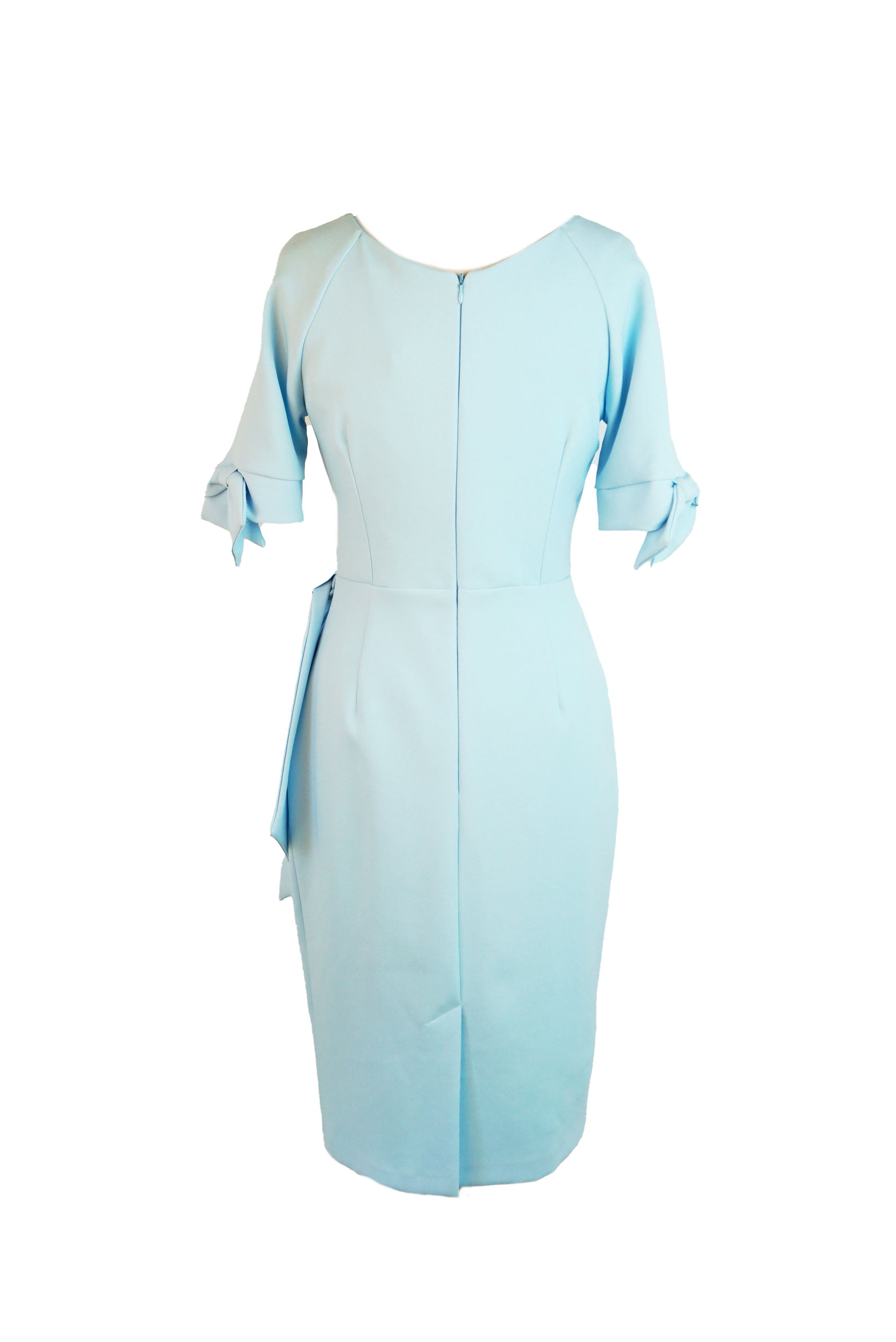 Ice Blue Hourglass Bow Sleeve Pencil Dress