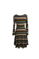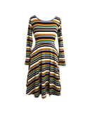This soft jersey dress features the perfect colors of Autumn! With radiant stripes, it adds fresh energy in the midst of the graying weather outside. Adorable with trainers, flats, boots, tights . . . . it is the perfect Fall staple! Adorable with our jean jackets or the Deauville Shrug in Rust.