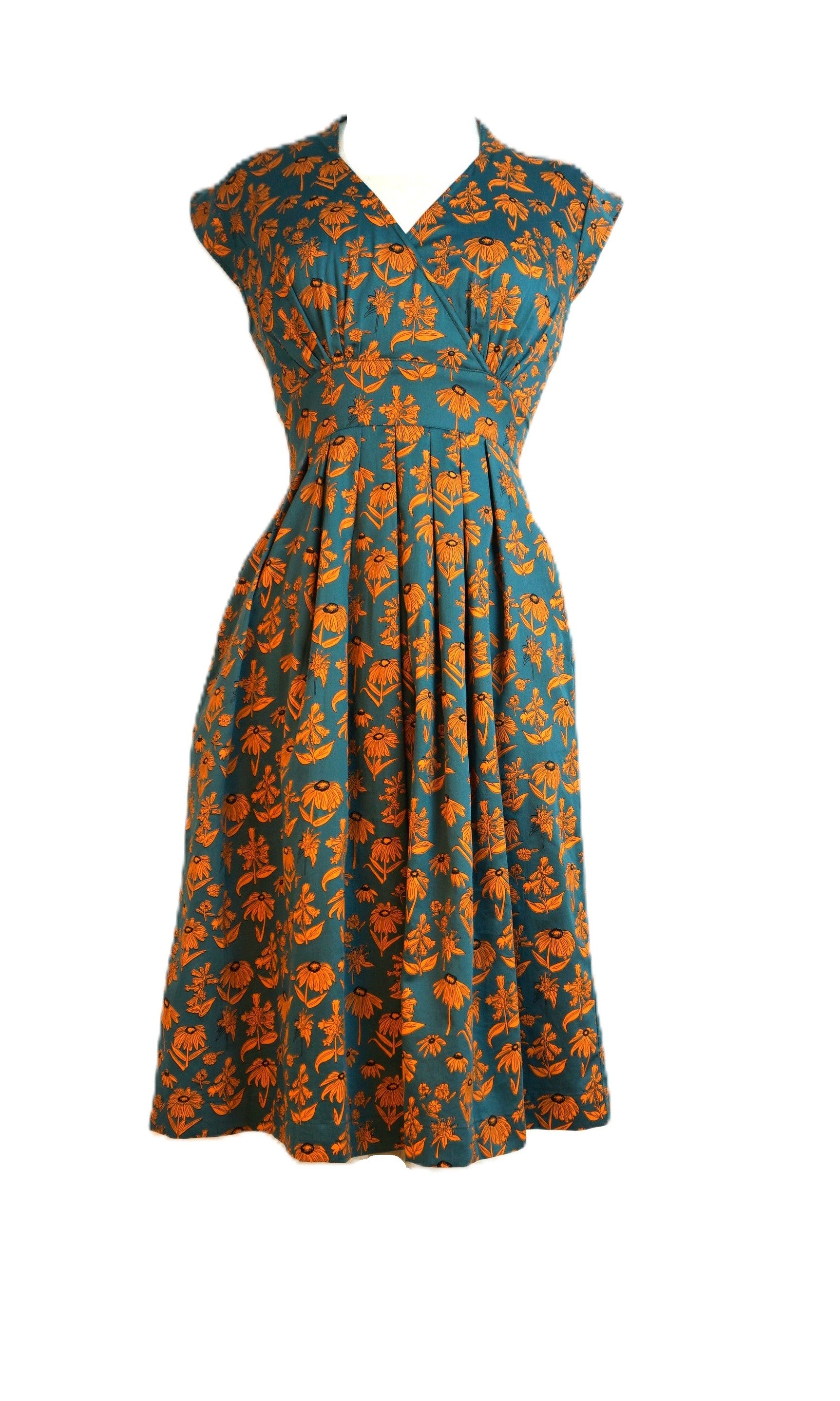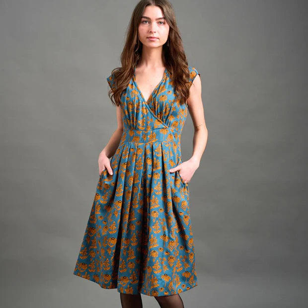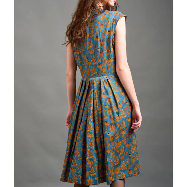 We love the Lucille Dress from Mata Traders, one of our favorite sustainable brands. This bold teal and bronze dress is the perfect vibe for early Fall: short sleeved, a relaxed but flattering fit, and breathable cotton!