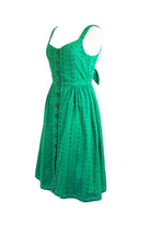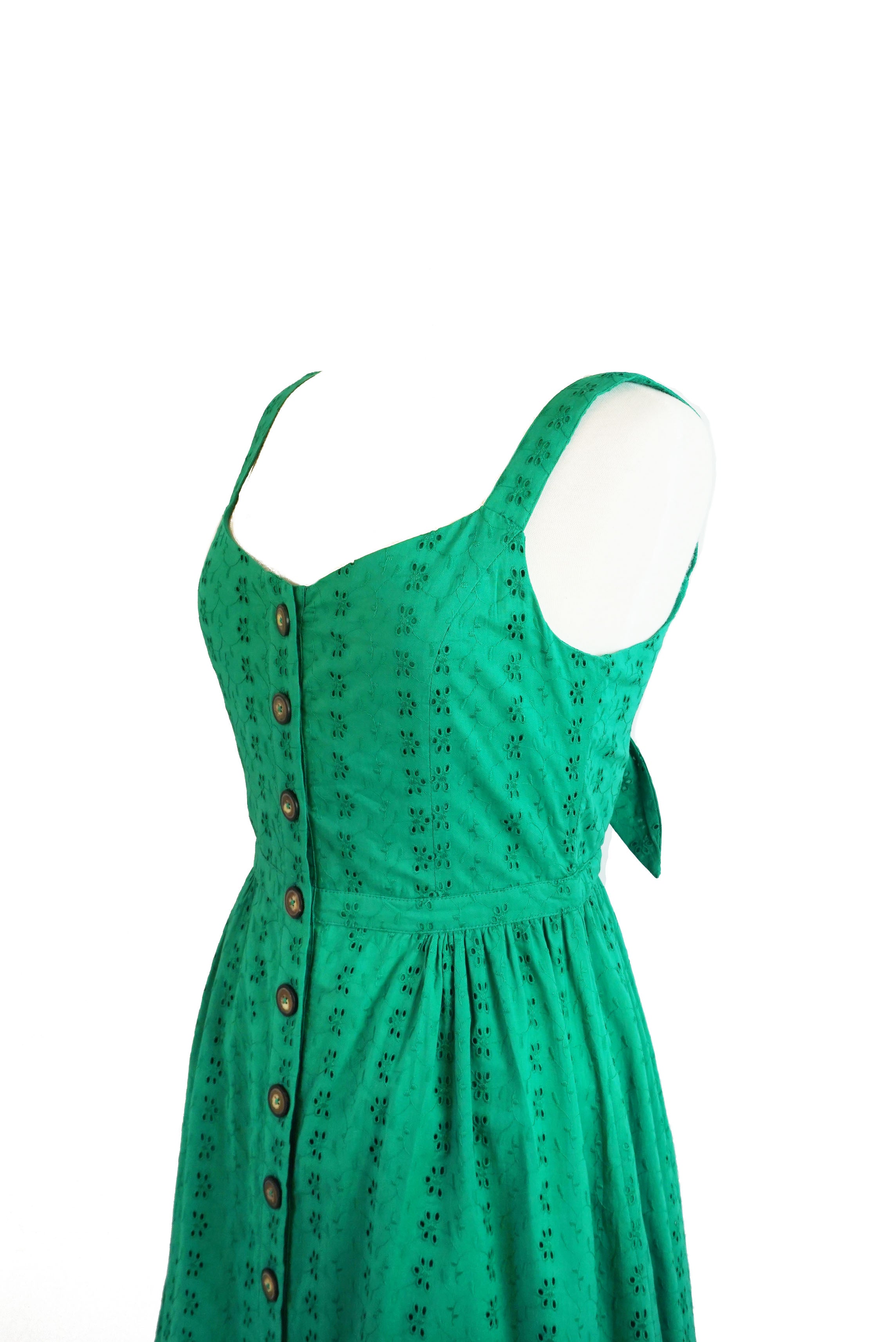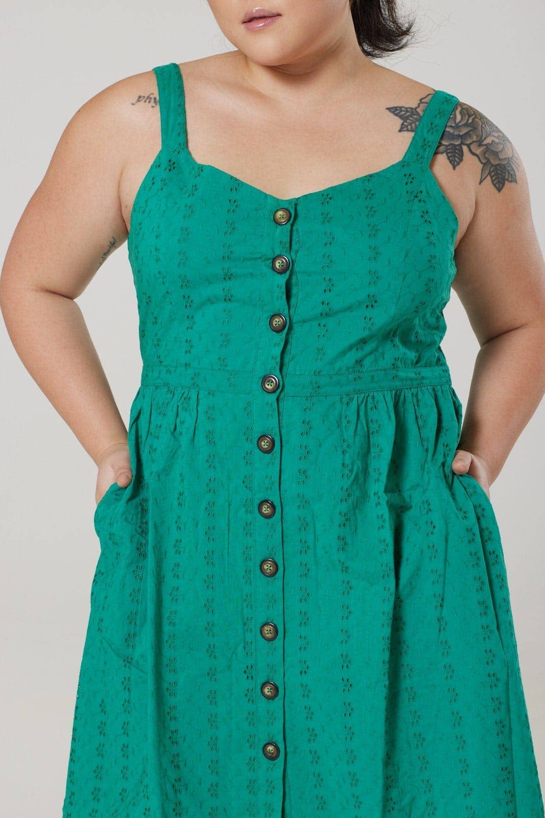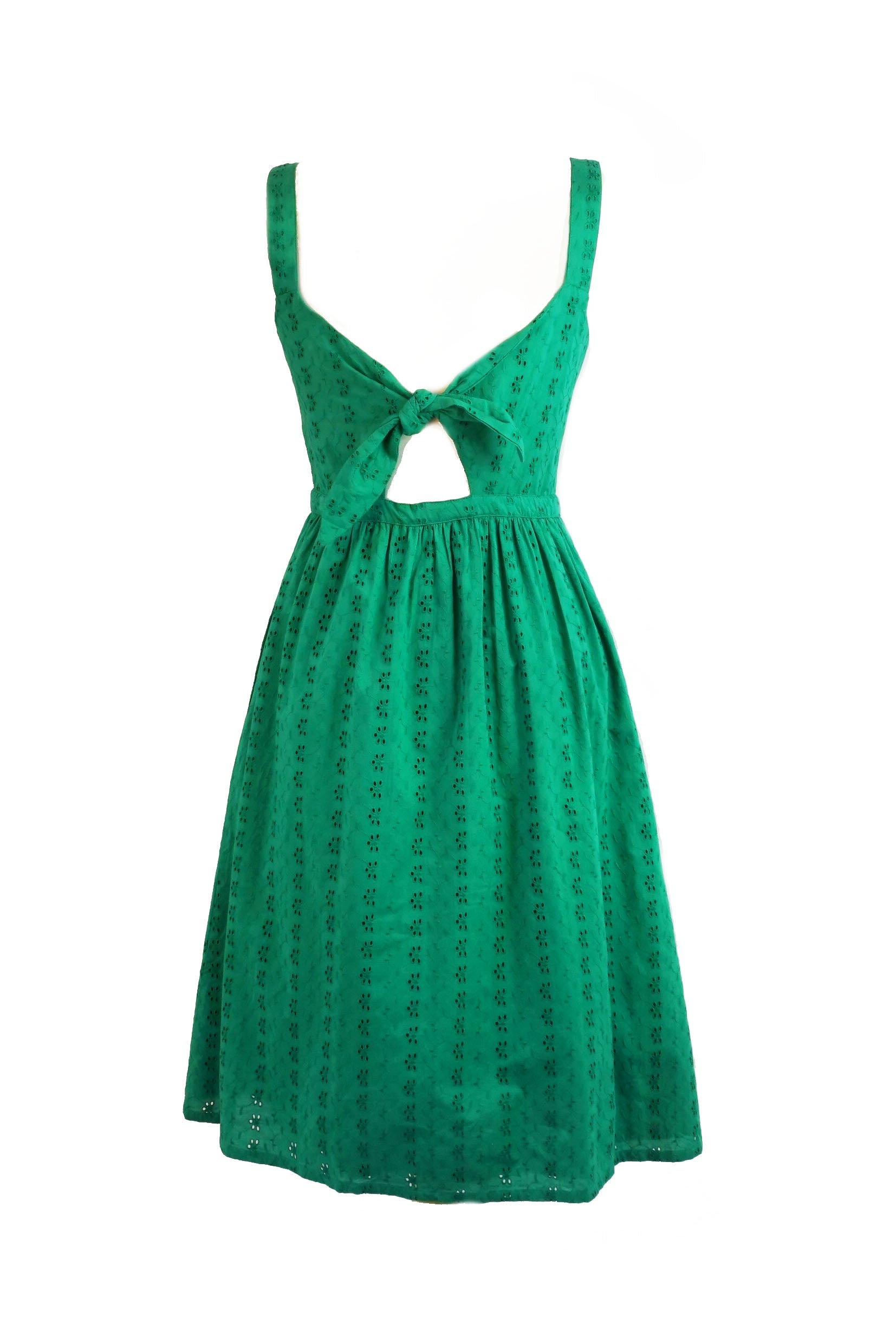 Our Remmy Broderie Anglaise Dress is perfect for any occasion. Crafted from our luxurious broderie anglaise fabric with a cotton lining to keep you cool on warm days. The sweetheart neckline, sleeveless detail, beautiful button detailing. cinched waist and back bow tie detail and an A-line skirt and side pockets makes it perfect for dressing up or down. Pair it up with some heels for that garden party you might have planned or wear it to a park picnic with a pair of white trainers. The perfect Timeless sun dress.
