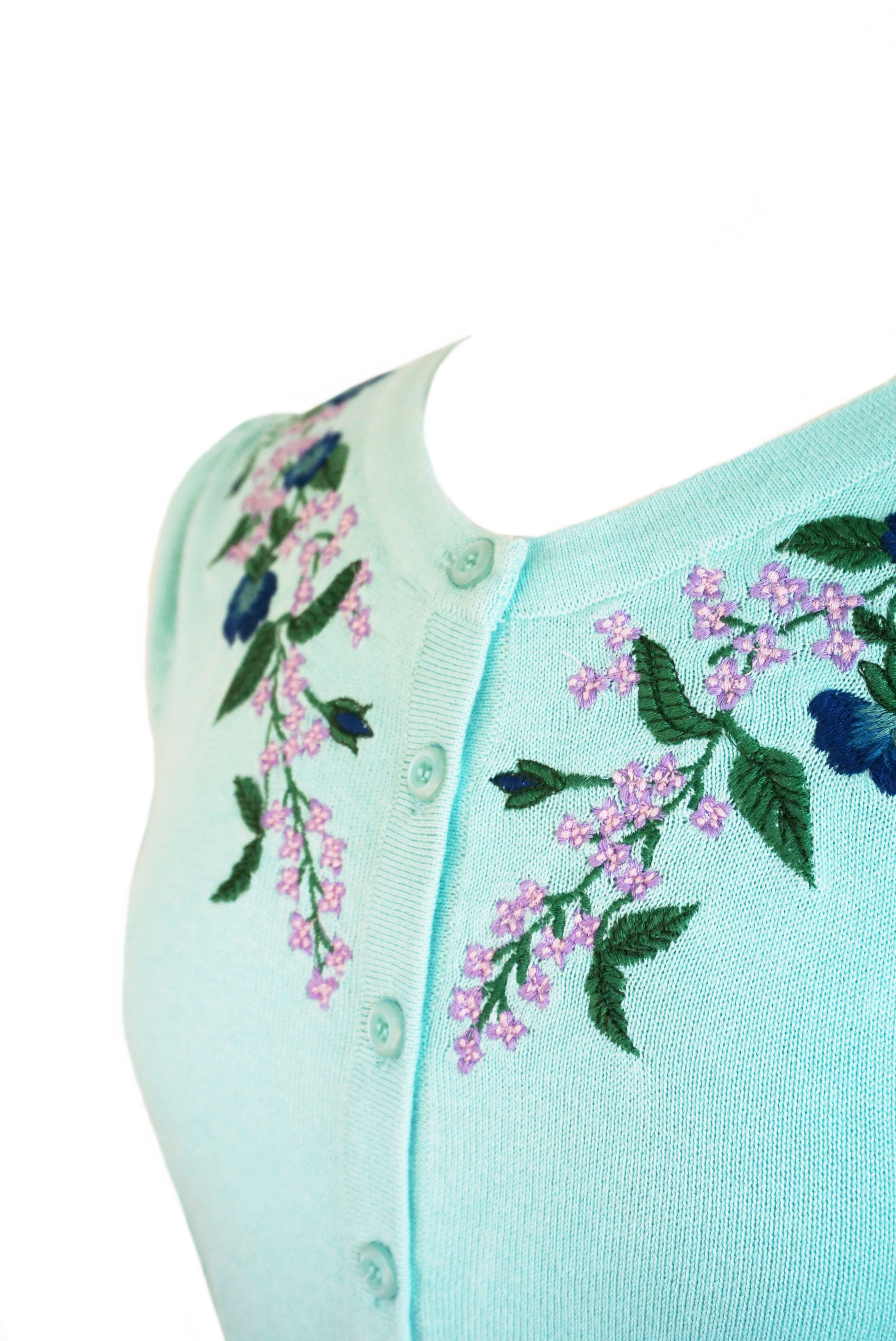We are super excited to show you our own designed Cardi! In Sea Glass and Lavender, these sweet short sleeve cardigans can be worn over anything. With an arch of floral embroidery, it adds a gentle sweetness to any outfit! Made sustainably in India with our manufacturing partners!