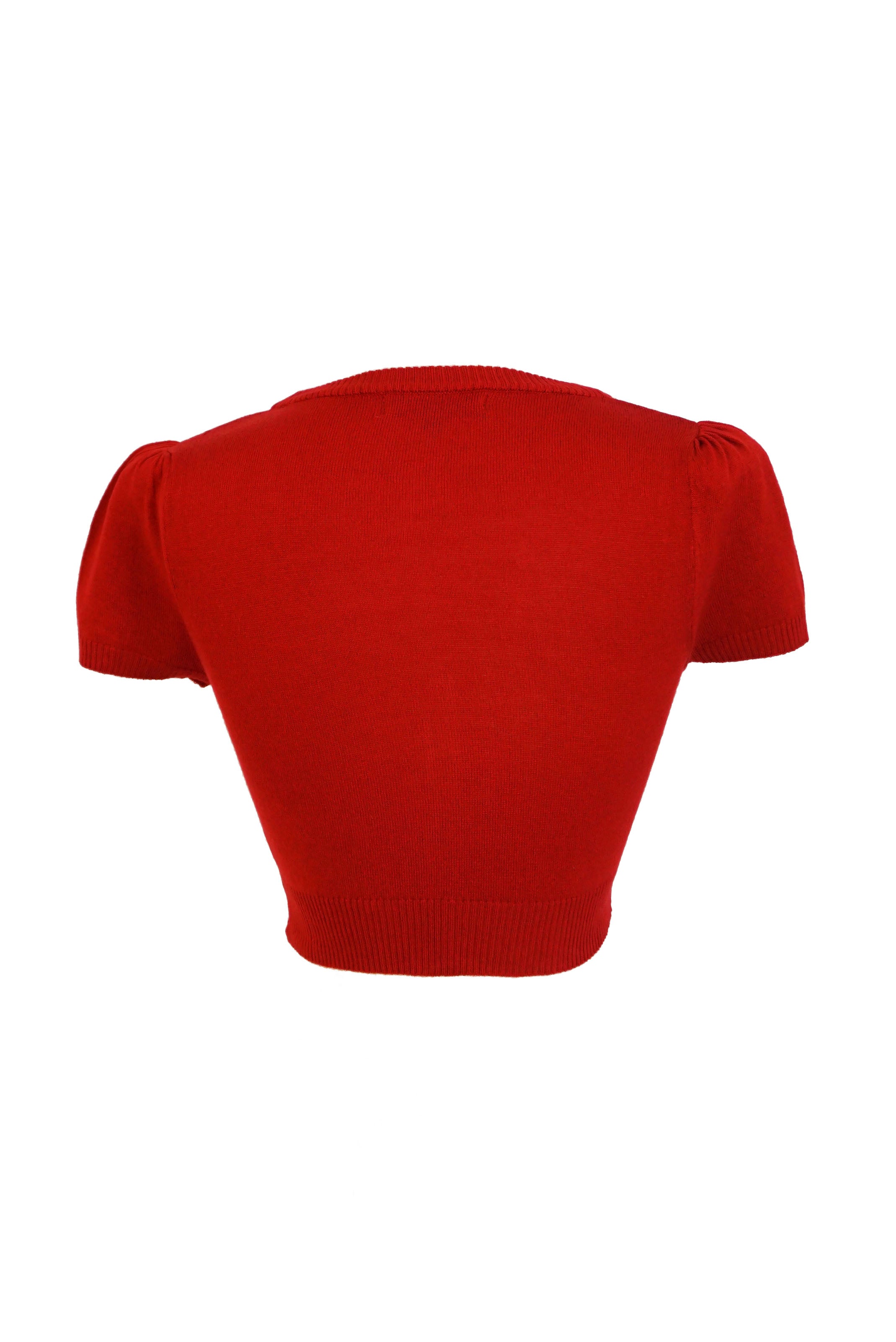 Cropped Cardigan with Cap Sleeves - Red