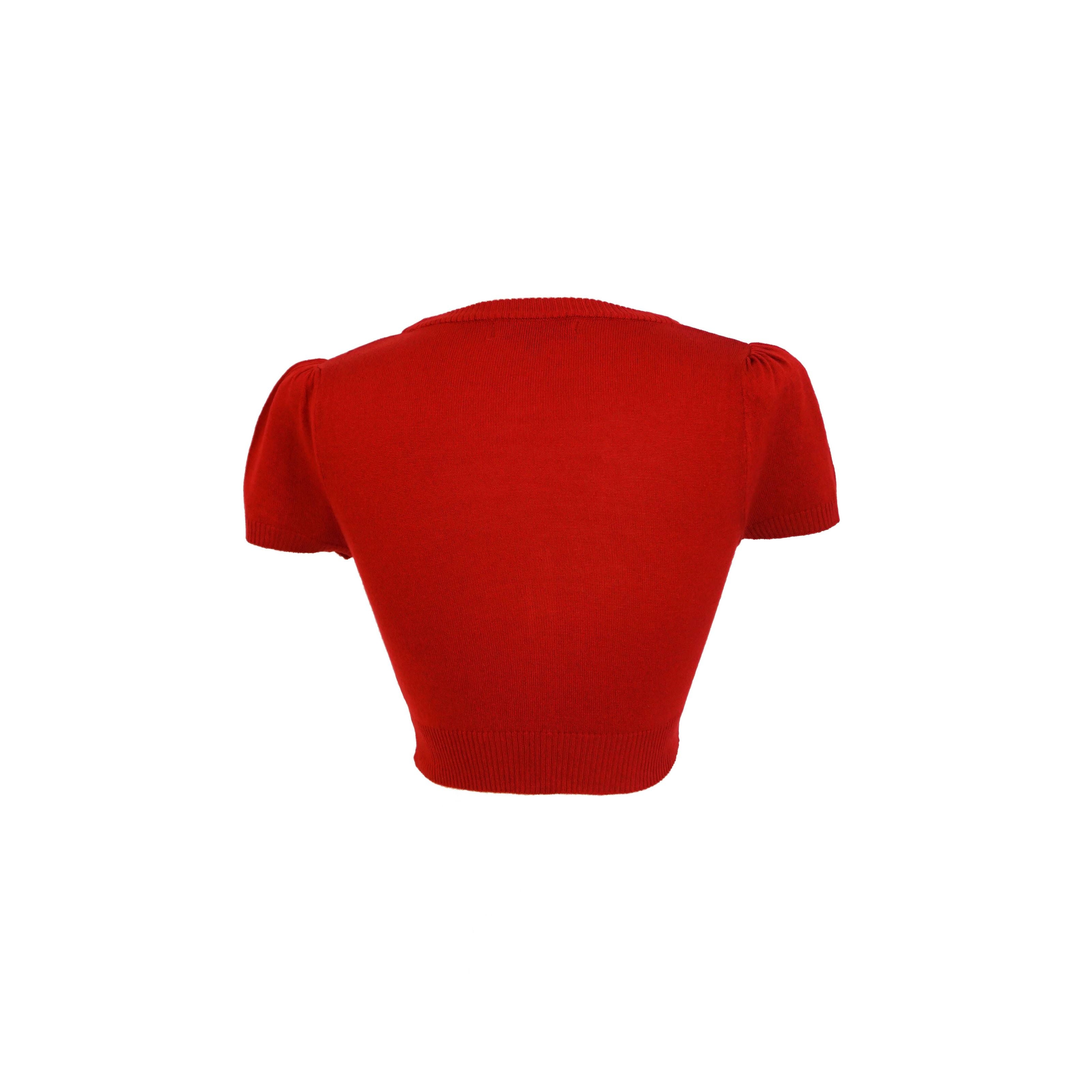 Cropped Cardigan with Cap Sleeves - Red