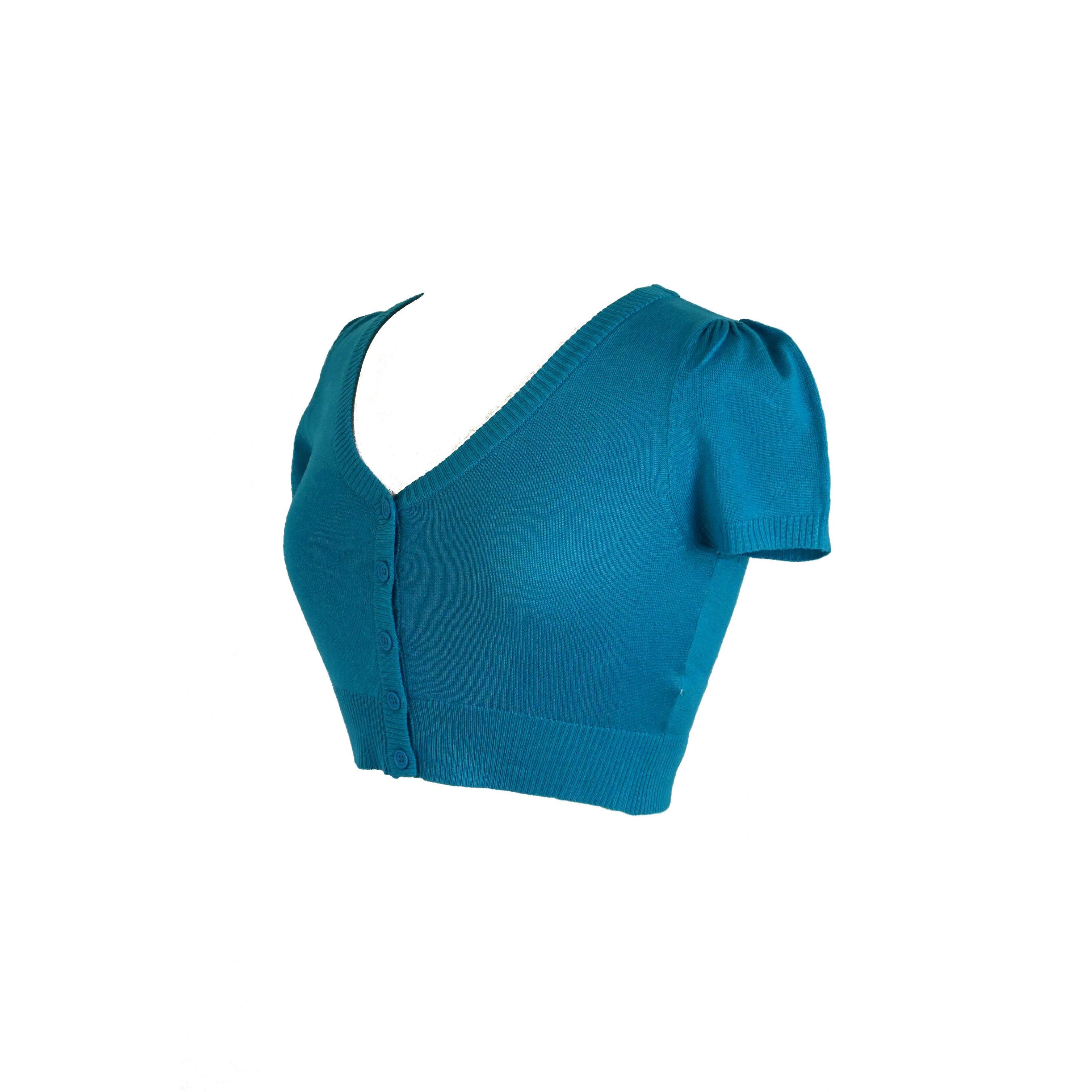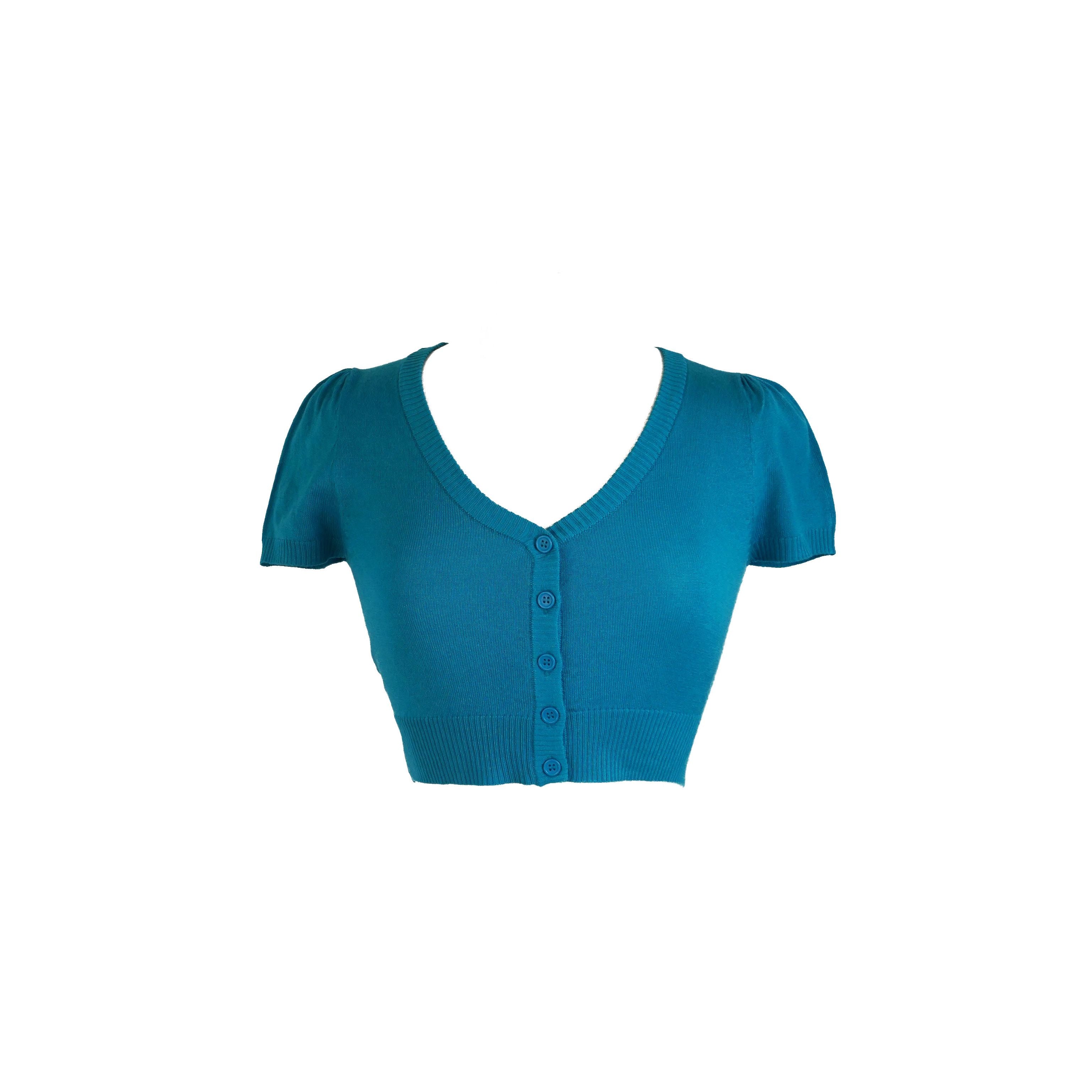 Add some extra color your outfit with this cropped cardi! It's perfect to have during those unexpected temperature drops or for that over-air-conditioned restaurant. With cap sleeves and a soft knit blend, you might want this sweater in every color!