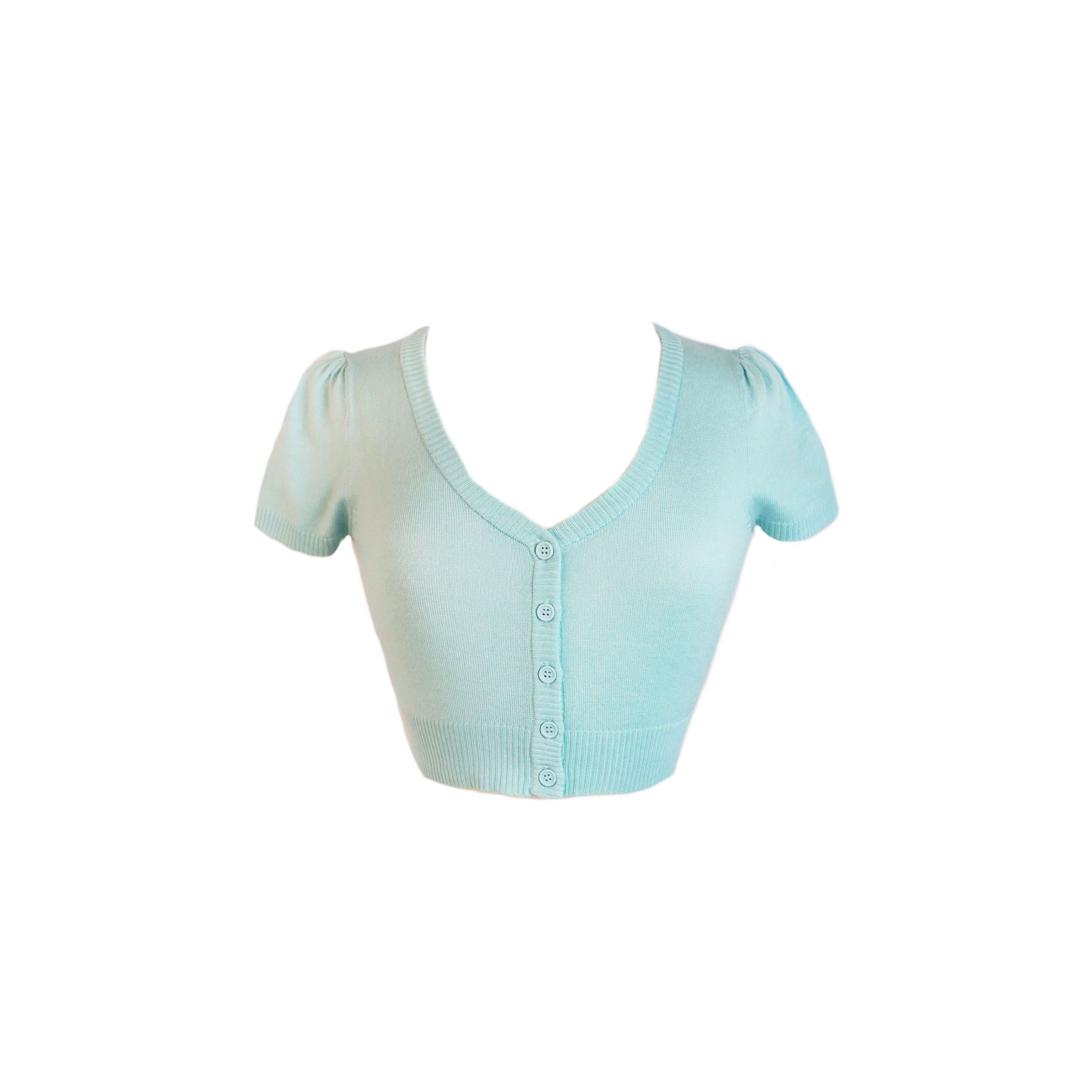 Cropped Cardi with Cap Sleeves - Ice Blue