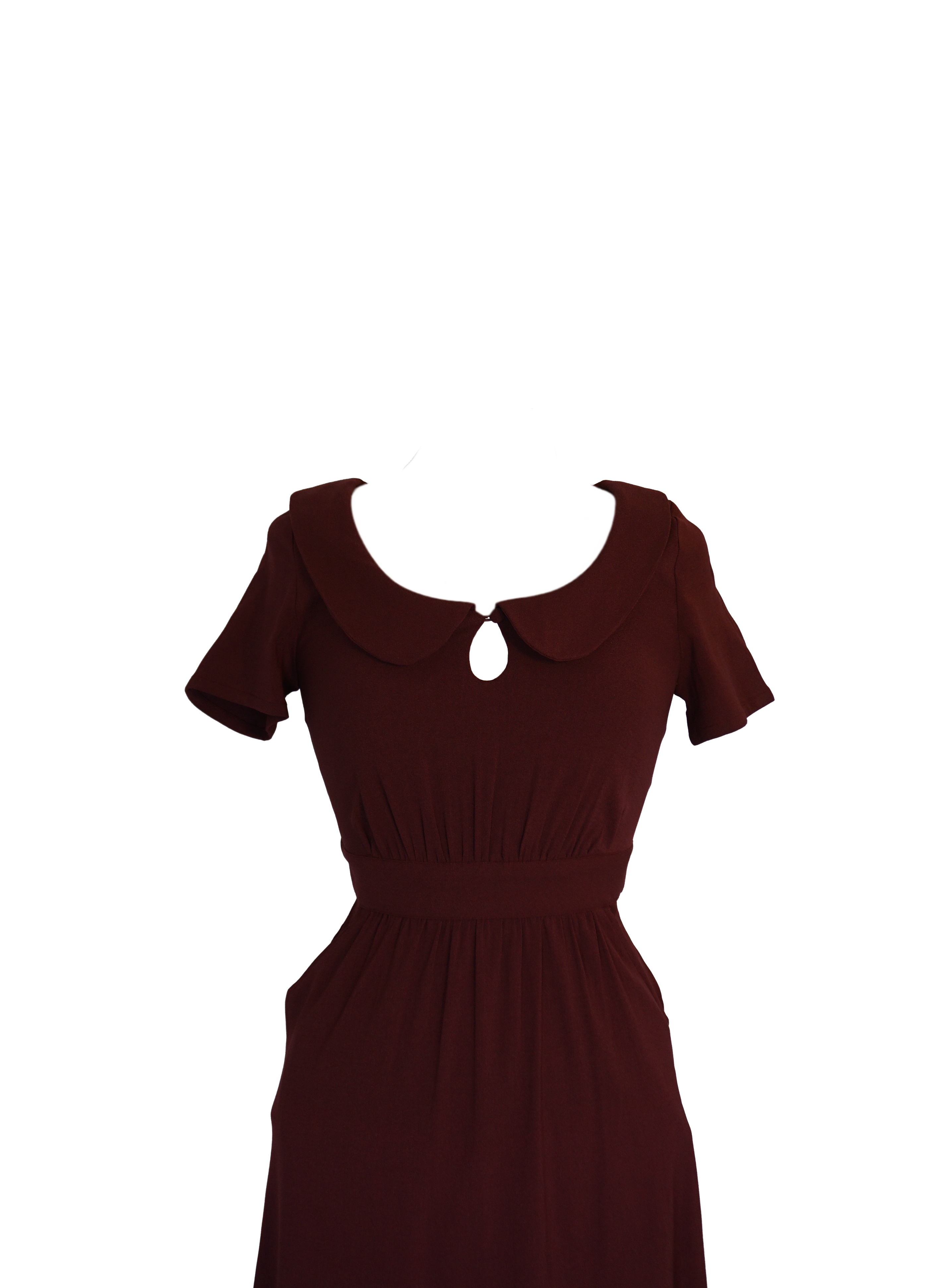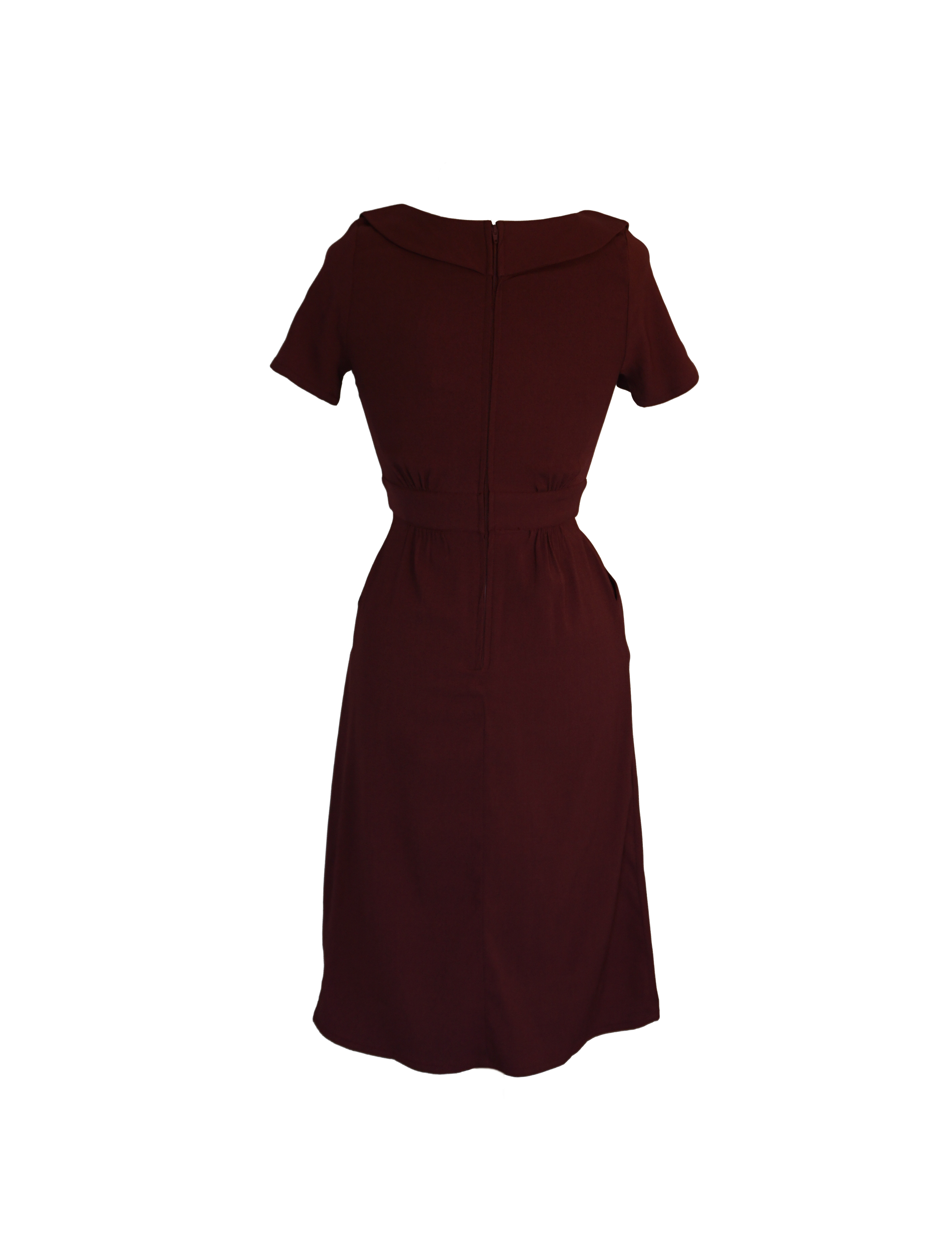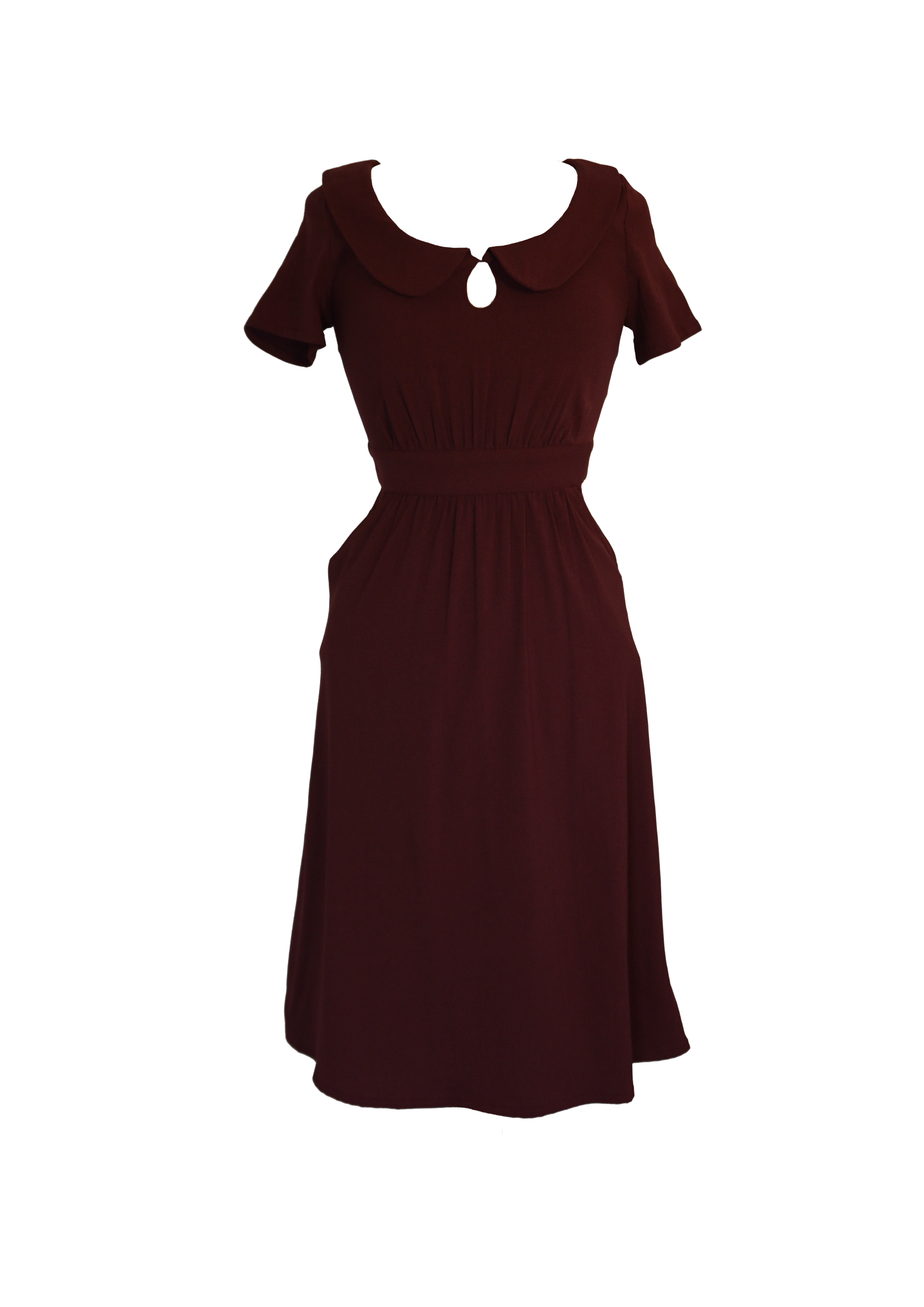 Who doesn't love a vintage cut with a Peter Pan collar? Our Mavis dress, in a rich wine shade, is the perfect dress to layer with a sweater or coat for those Fall and Winter days at the office, or a sweet innocent vibe for a night out! And as for most of our dresses, it can be dressed up or down.