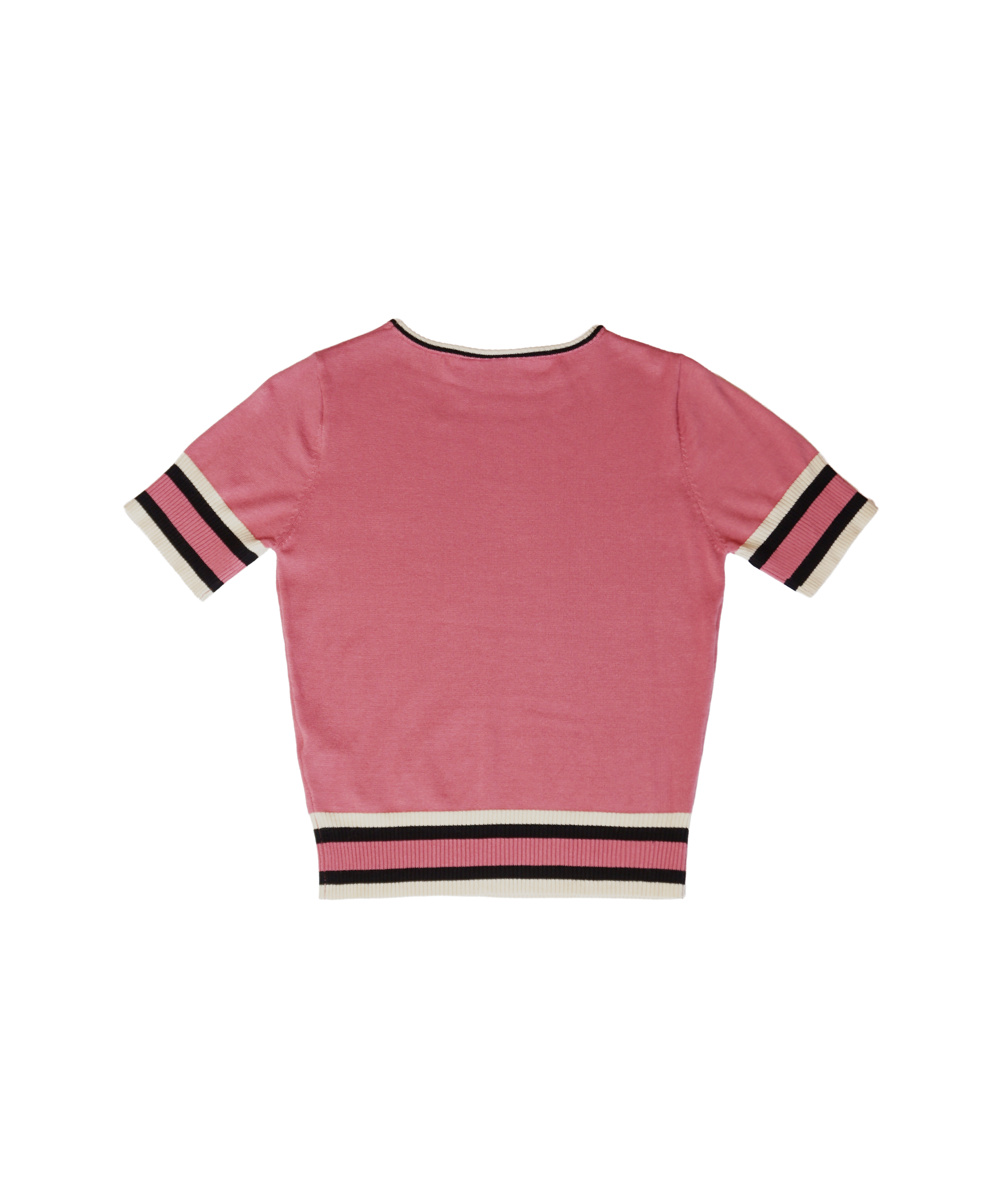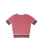 This darling short sleeved kitty sweater is the perfect solution to your early Fall wardrobe! The striped sleeves add a sporty feel to this fun sweater. Made of 100% viscose and needs to be hand washed.