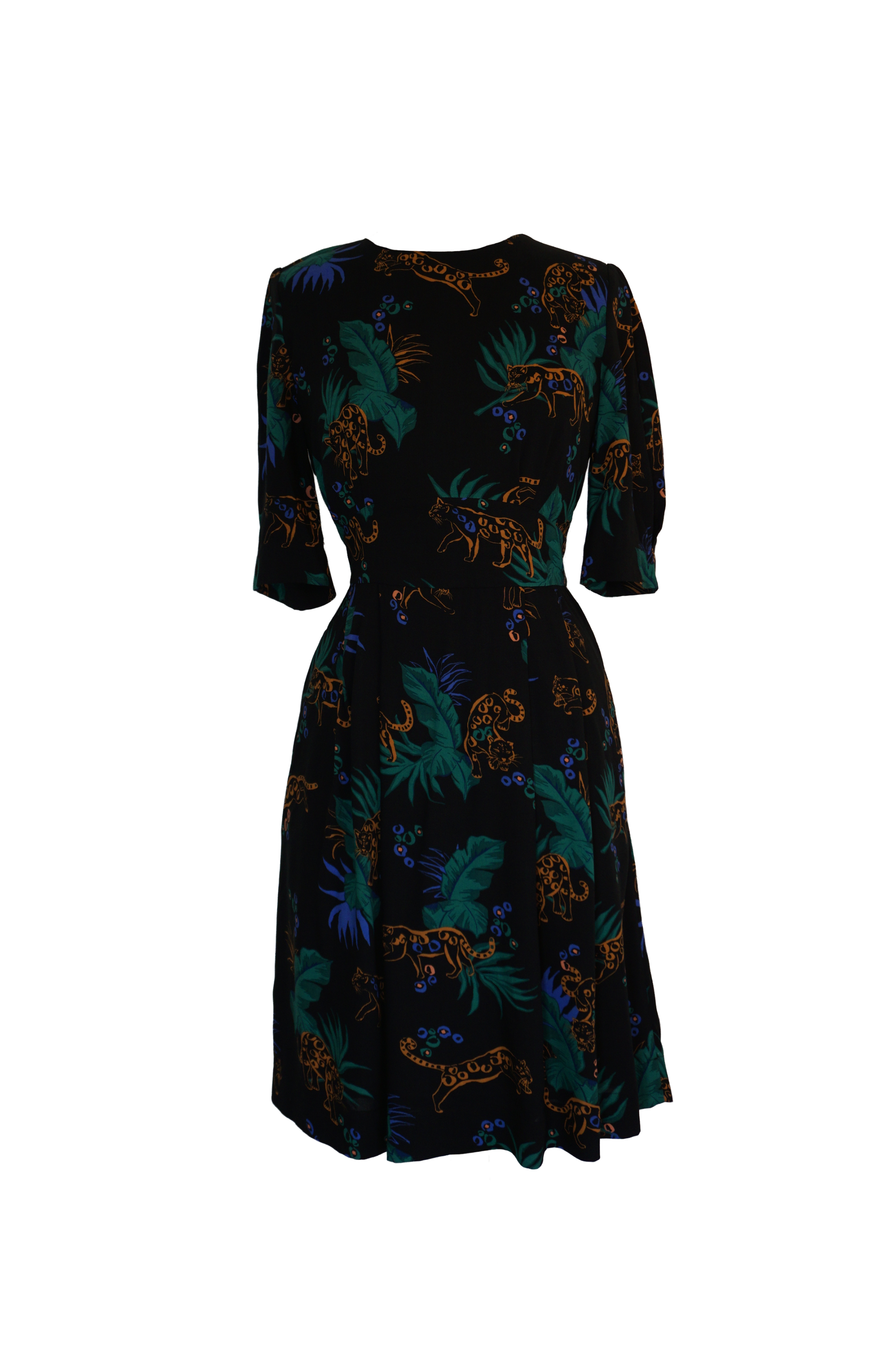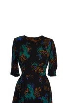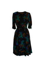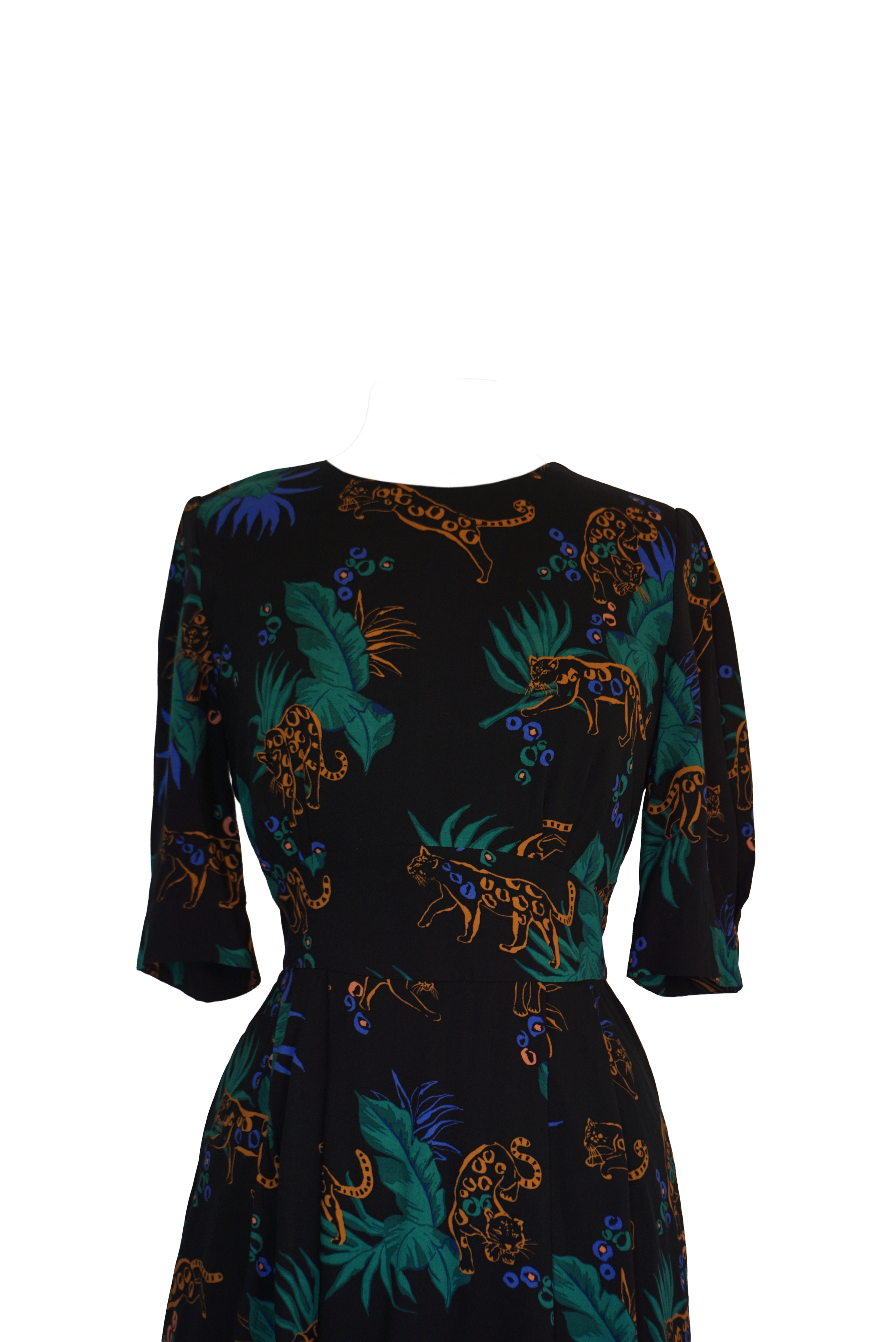 The perfect autumn/winter, day to evening dress! Choose our Midnight Leopard print to turn heads wherever you go. Featuring a wide waistband and bust and skirt pleats to create an elegant, flattering fit, we’ve also added inverted box pleats at the cuffs to give volume to the half length sleeve. A center back keyhole and button detail add interest. Fully lined with an invisible side zip to close and finished with our signature concealed side seam pockets.